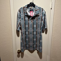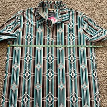 Primary image for Panhandle Performance Quarter Snap Western Aztec Turquoise Polo Mens Size L  NEW