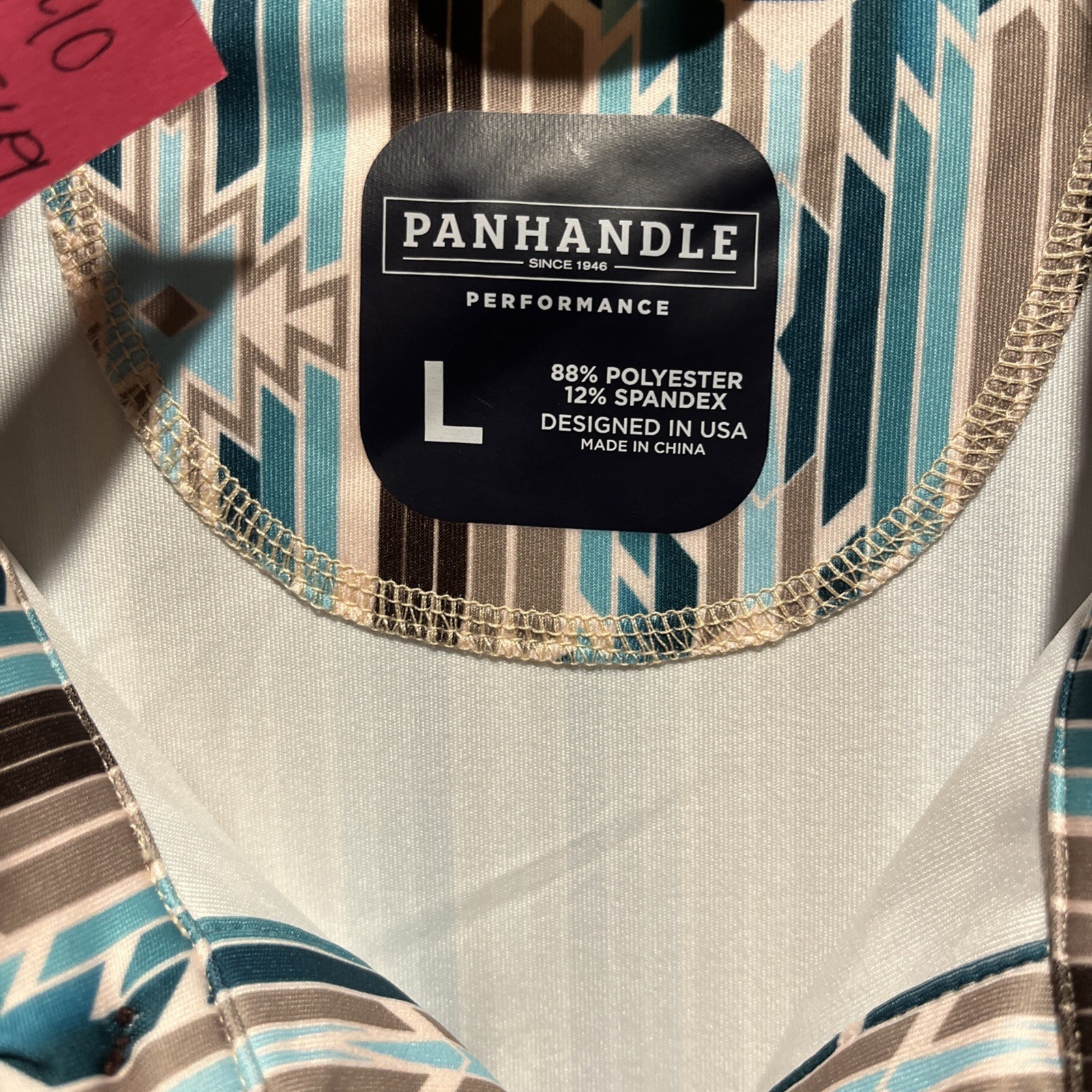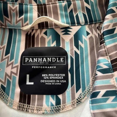 Panhandle Performance Quarter Snap Western Aztec Turquoise Polo Mens Size L NEW