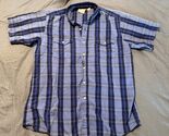 Panhandle Slim Western Shirt L Short Sleeve Blue Plaid Button Front