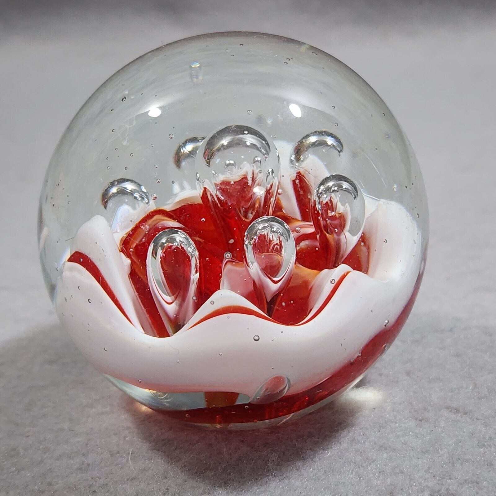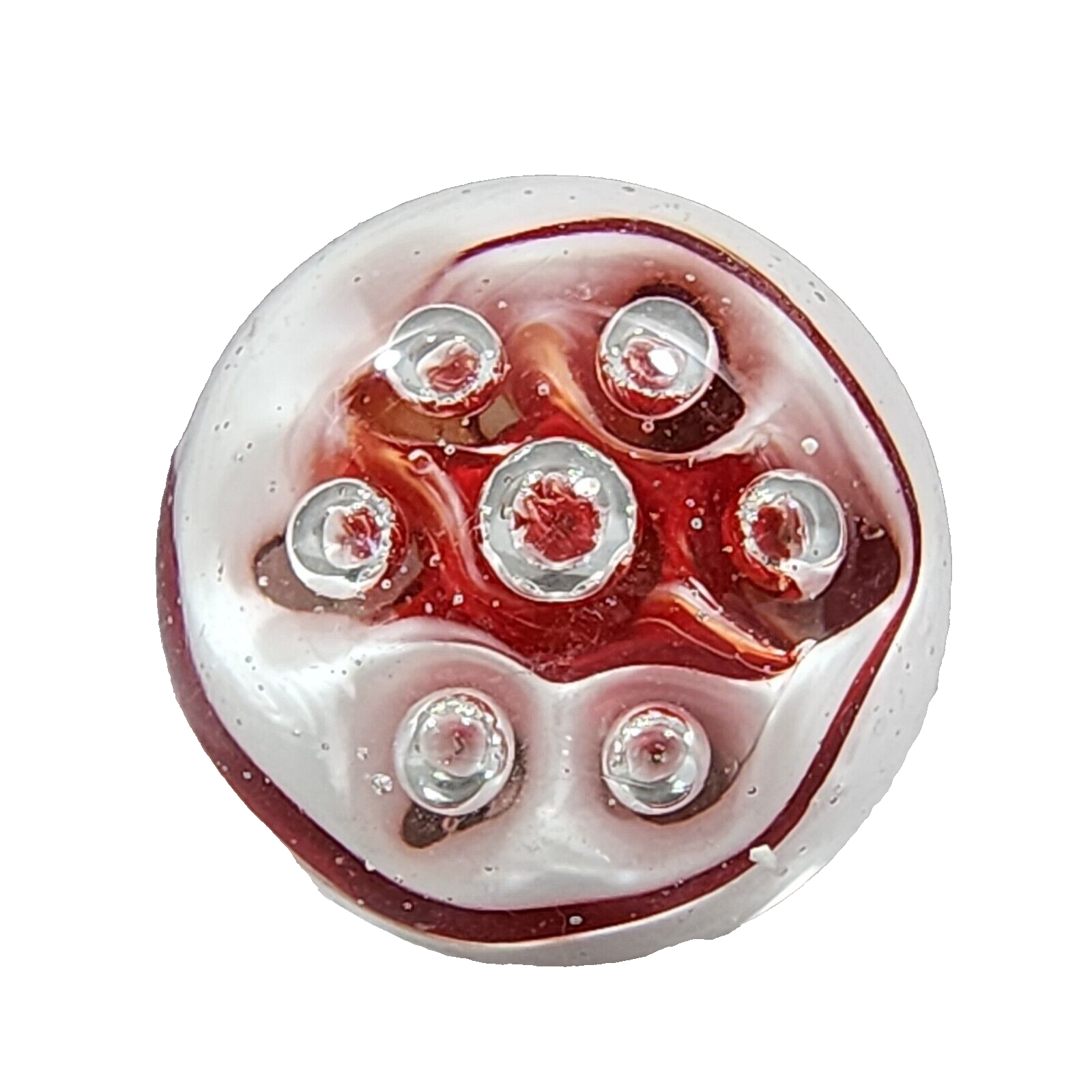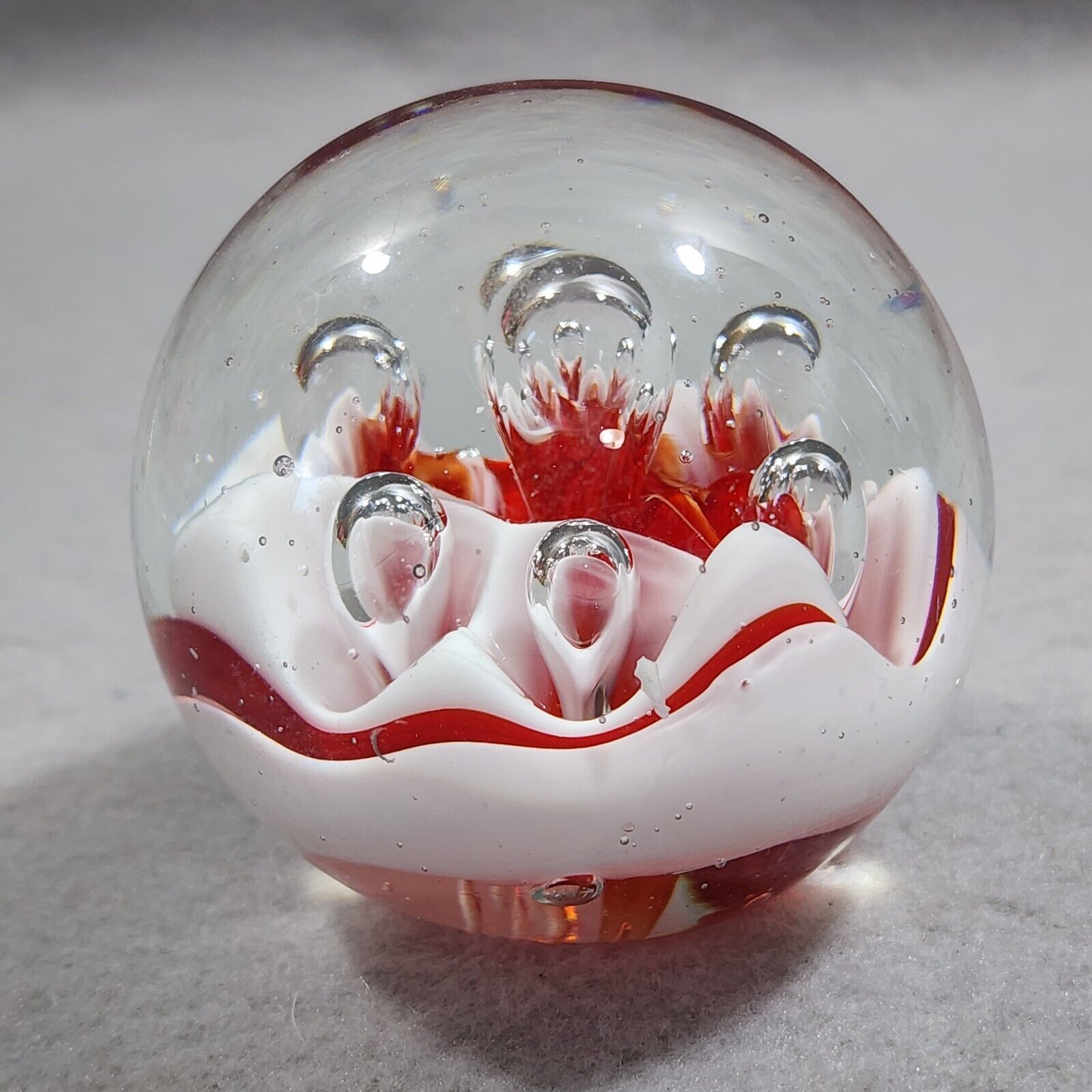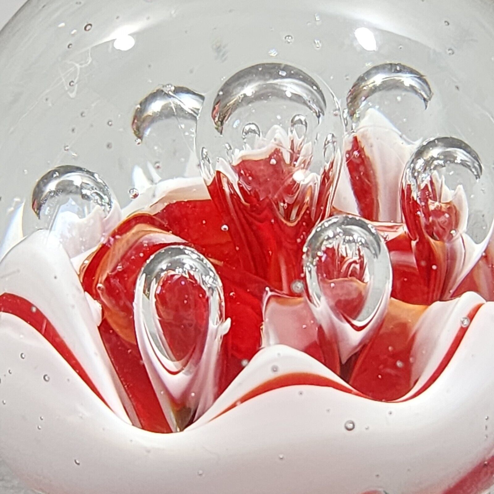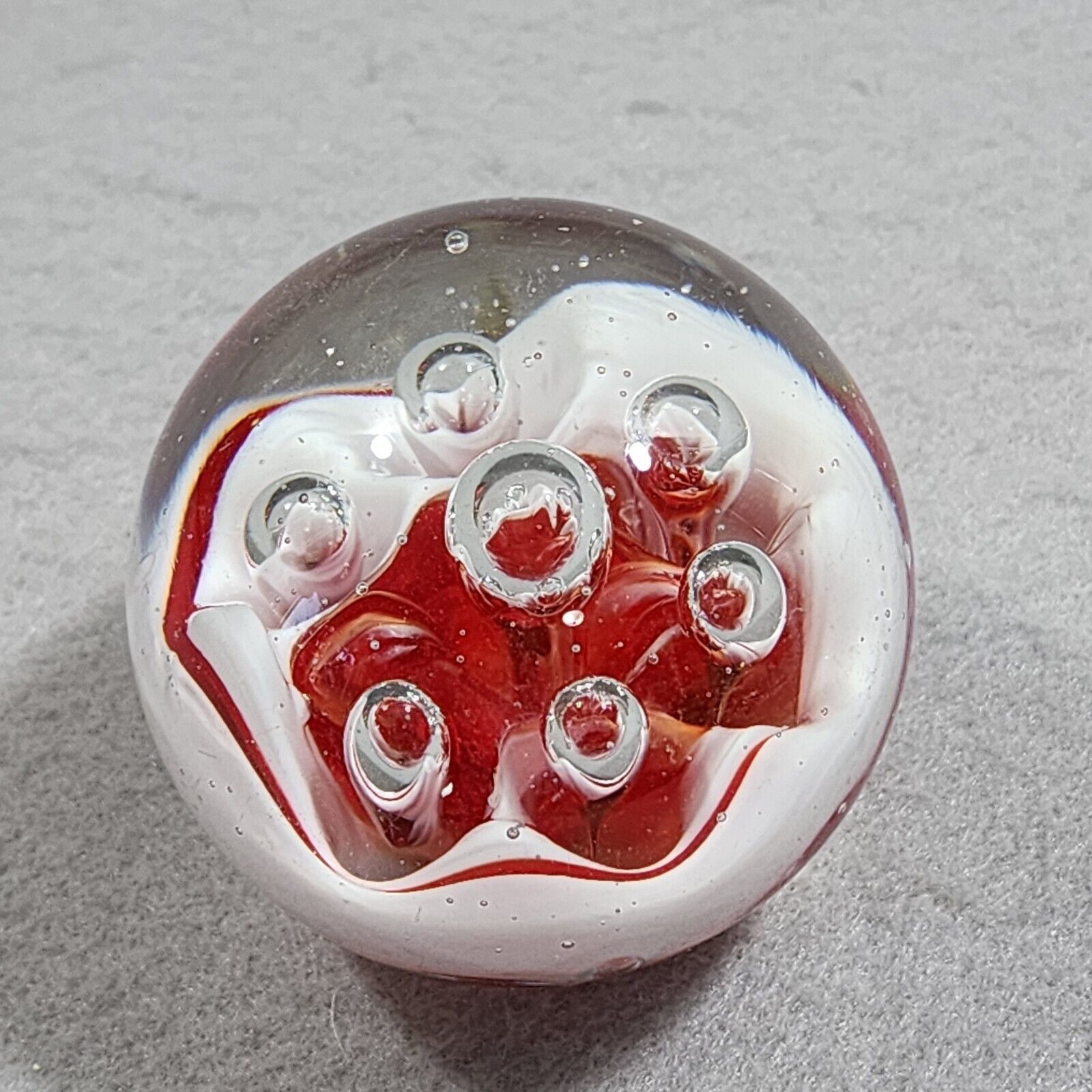 Paperweight Large Concentric Spaced Bubbles Red White Hand Blown Art Glass