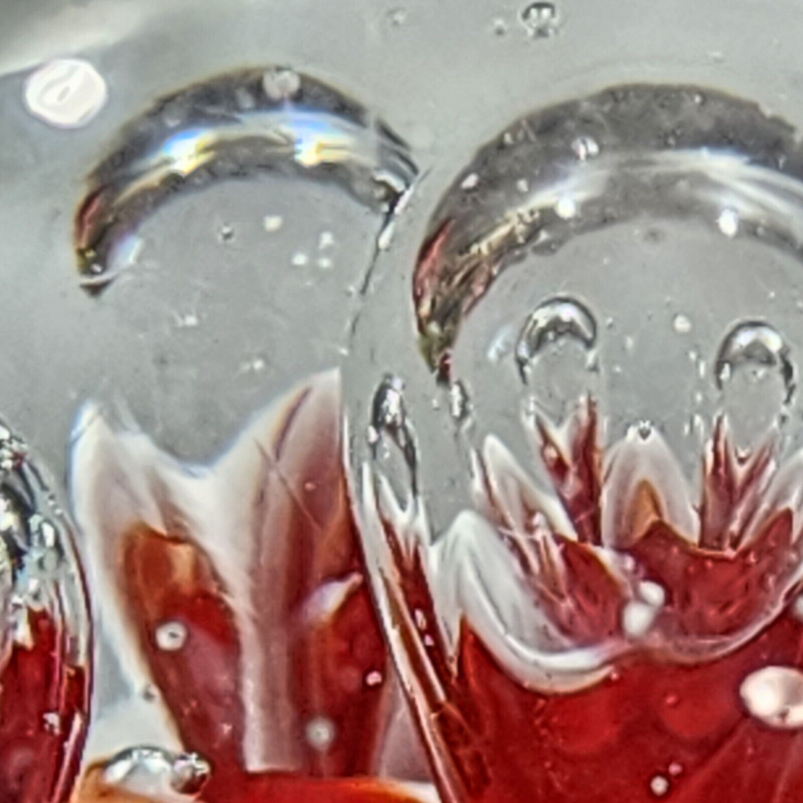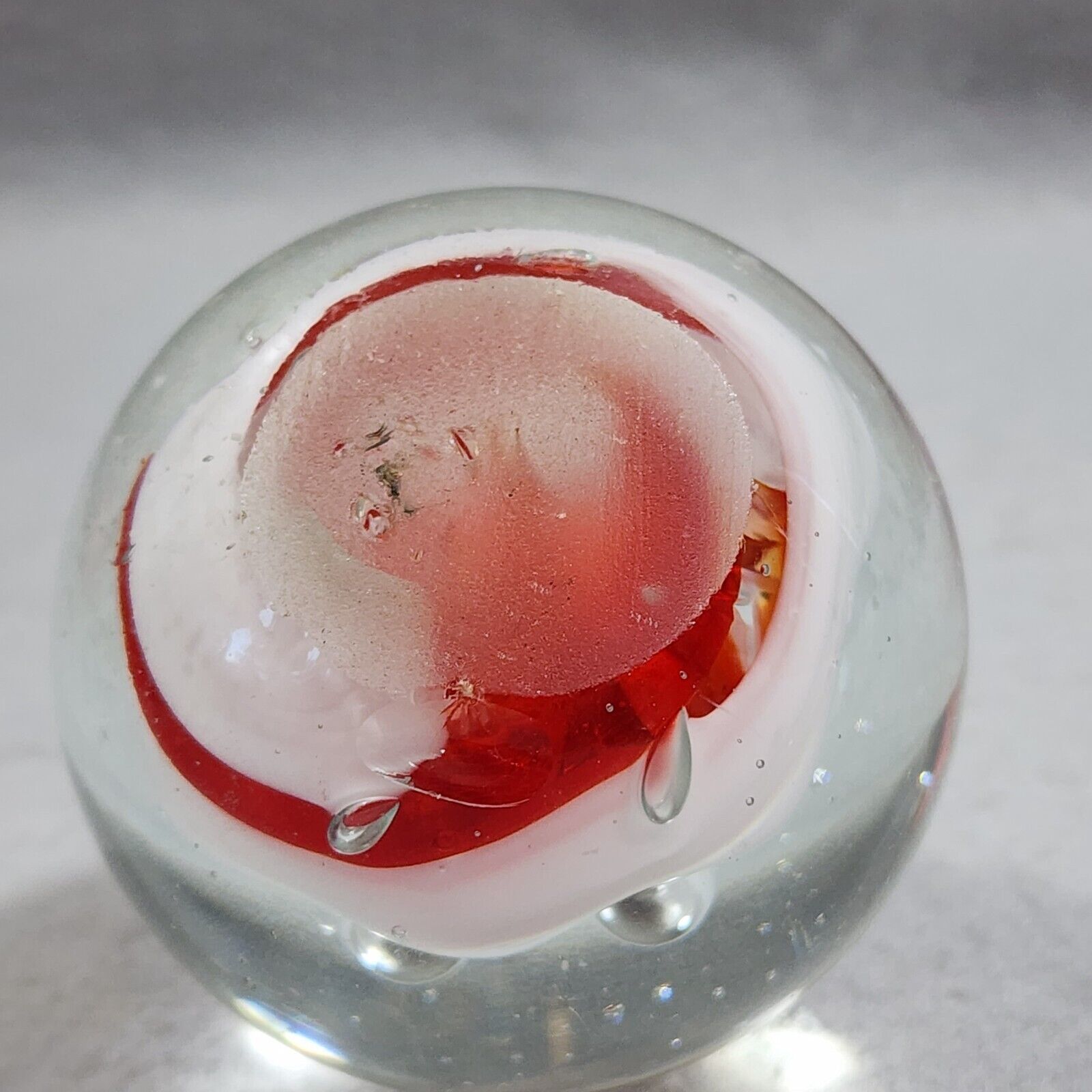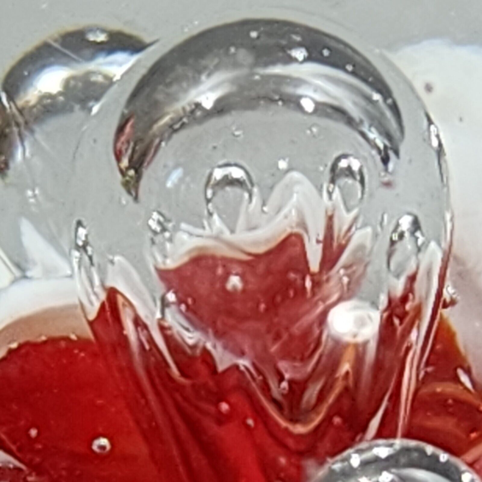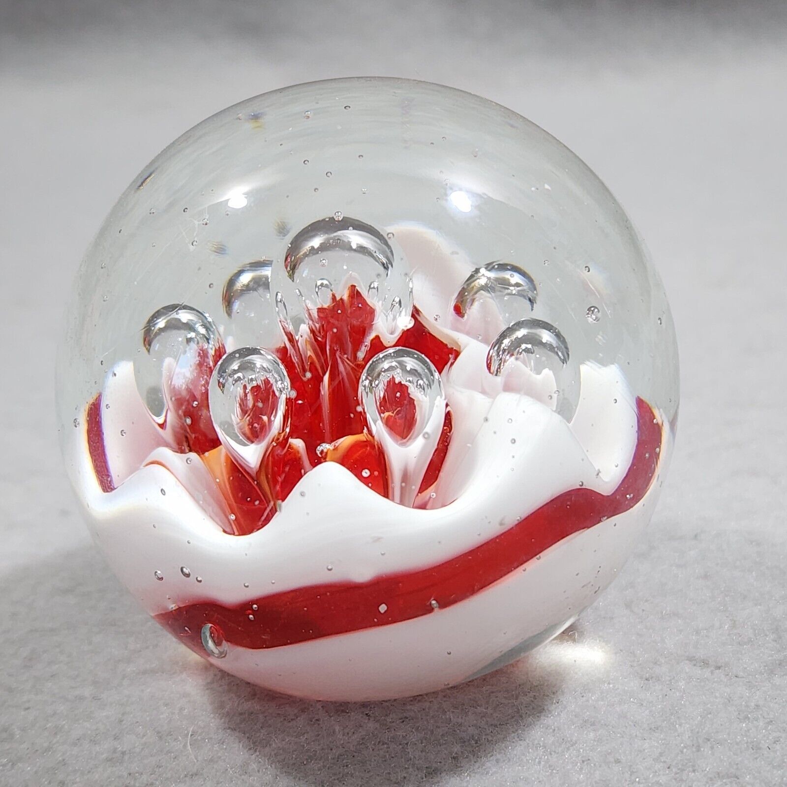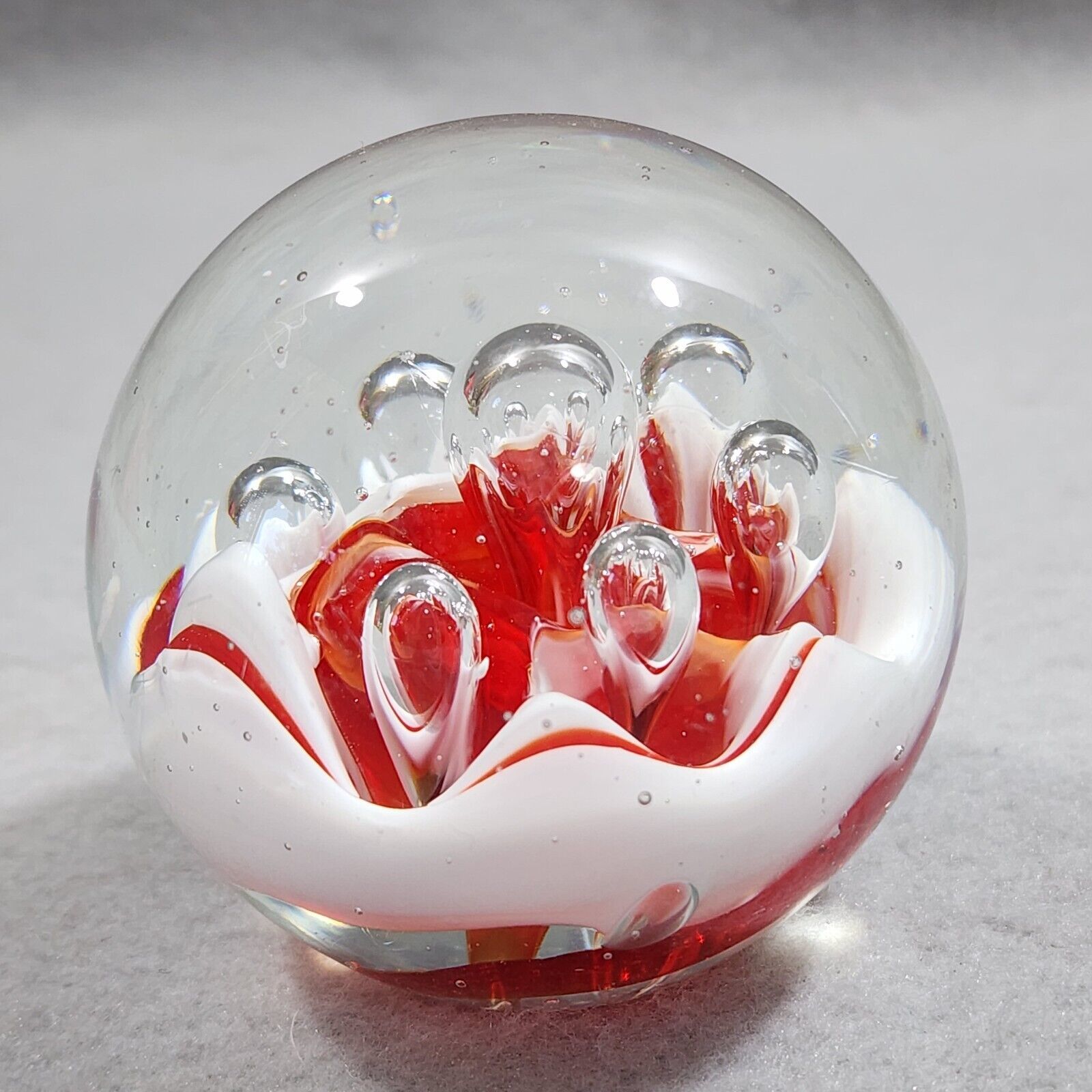 Paperweight Large Concentric Spaced Bubbles Red White Hand Blown Art Glass