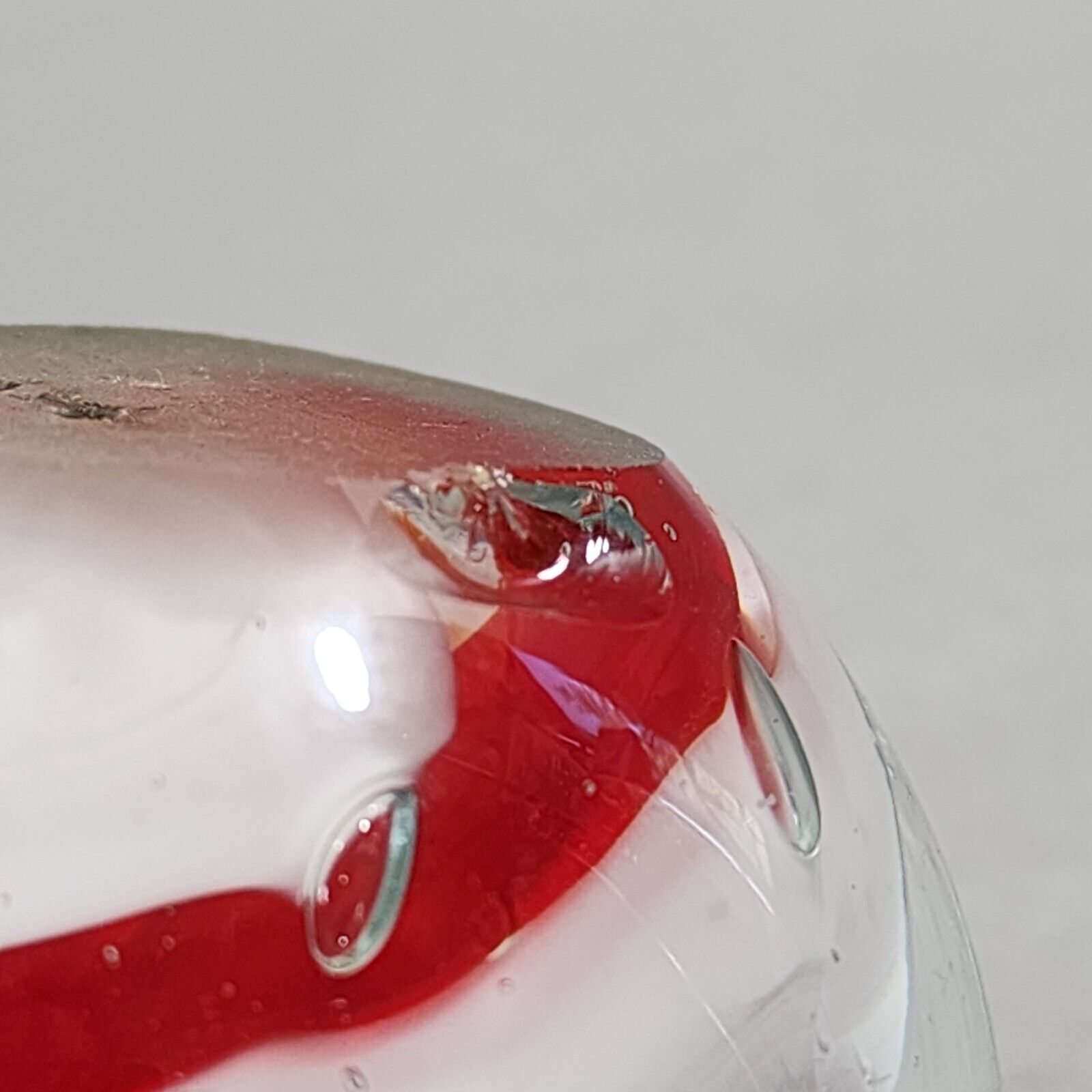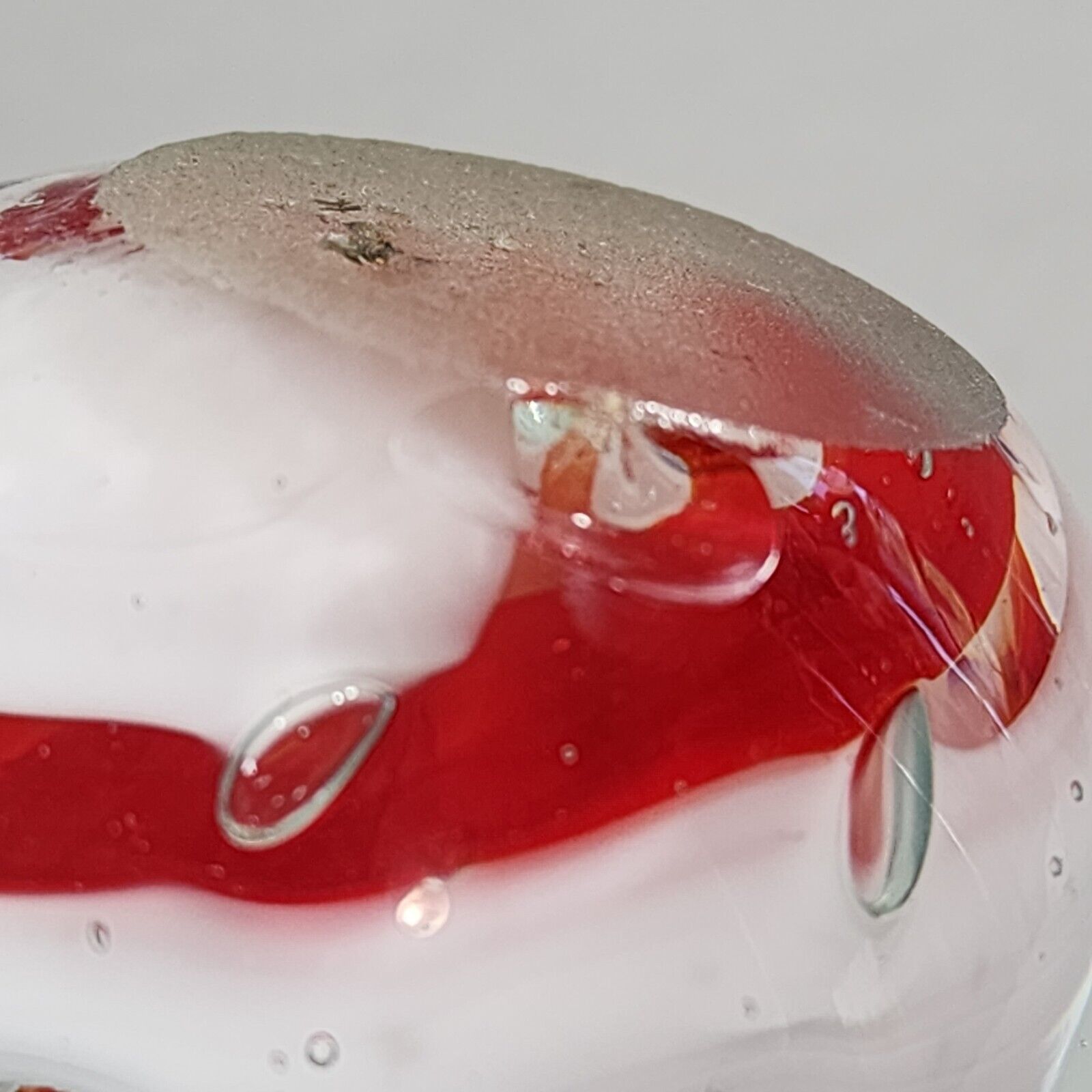 Paperweight Large Concentric Spaced Bubbles Red White Hand Blown Art Glass Preowned. Gently lovingly enjoyed. 8.4mm x 5.1mm chip on bottom-side as seen in photos