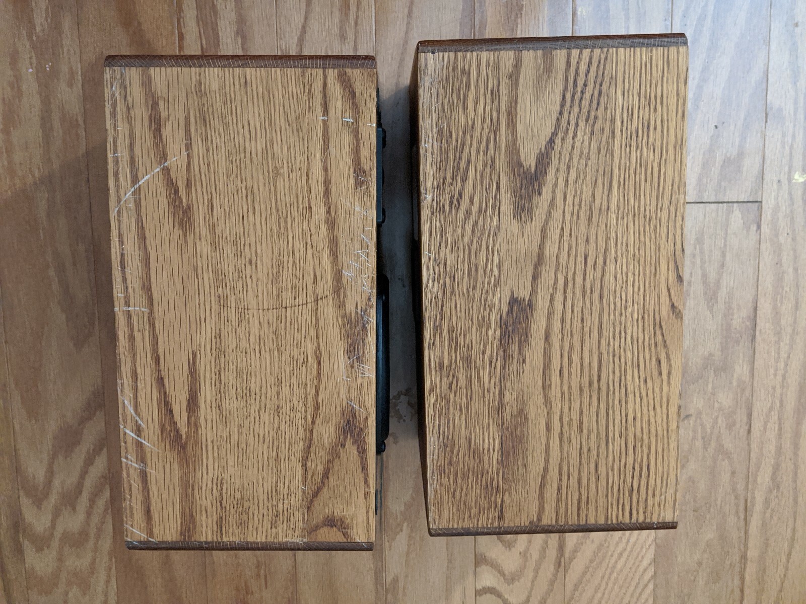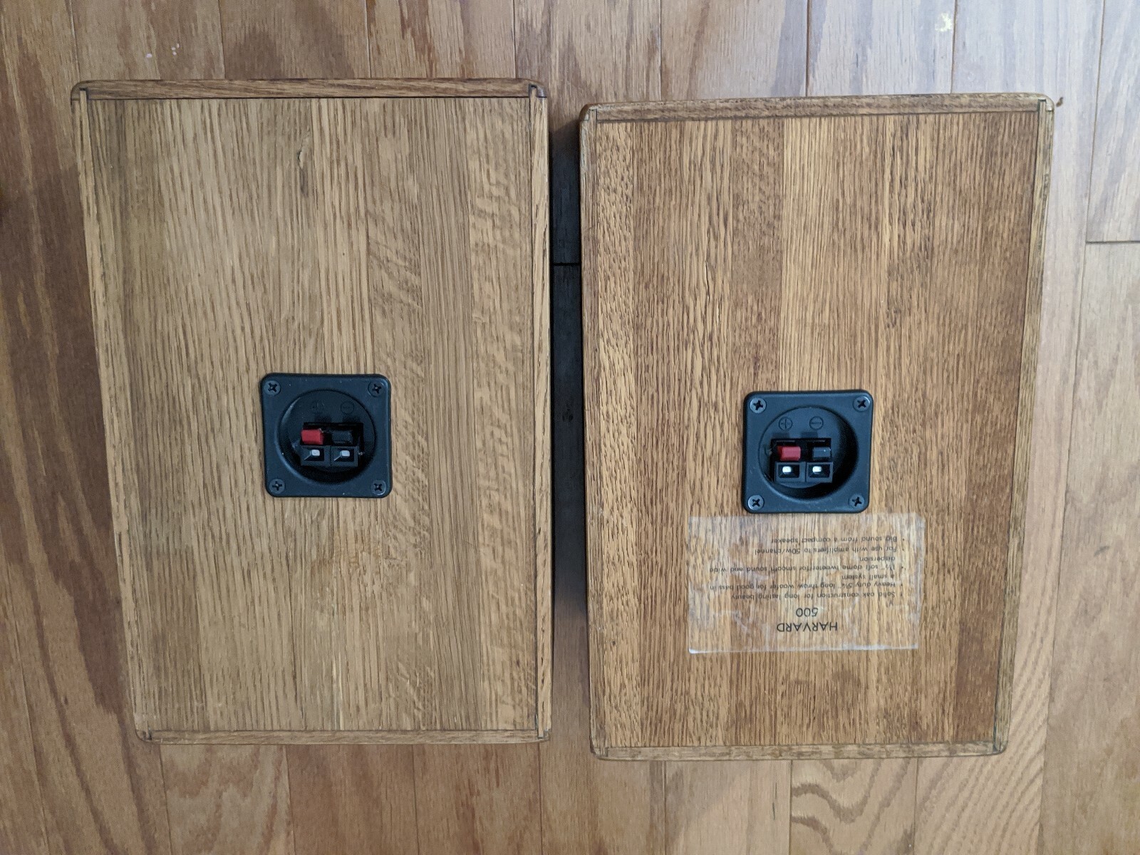A la venta hay un par de altavoces de estanterรญa Harvard modelo 500 en cajas de roble.