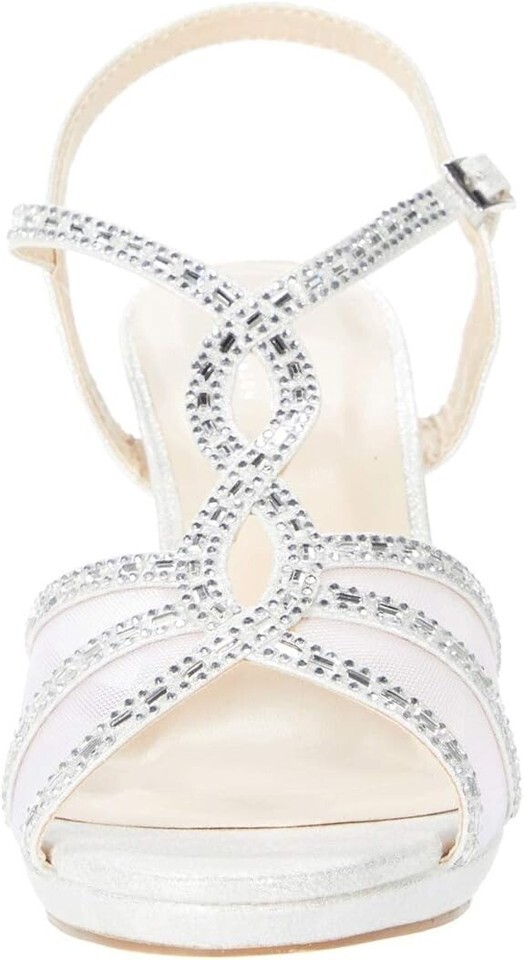 Paradox London Estelle Sz 6.5 M Women's Jeweled Strappy Platform Sandals Silver