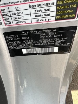 Passenger Headlight Convertible Without Xenon Fits 06-10 VOLVO 70 SERIES 1398072