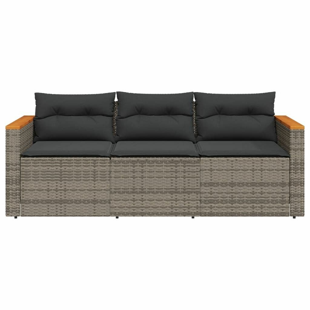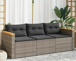 - Patio Sofa with Cushions 3-Seater Gray Poly Rattan