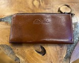 Brown leather wallet featuring multiple card slots and a clear ID window.