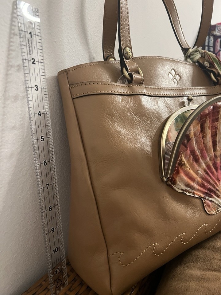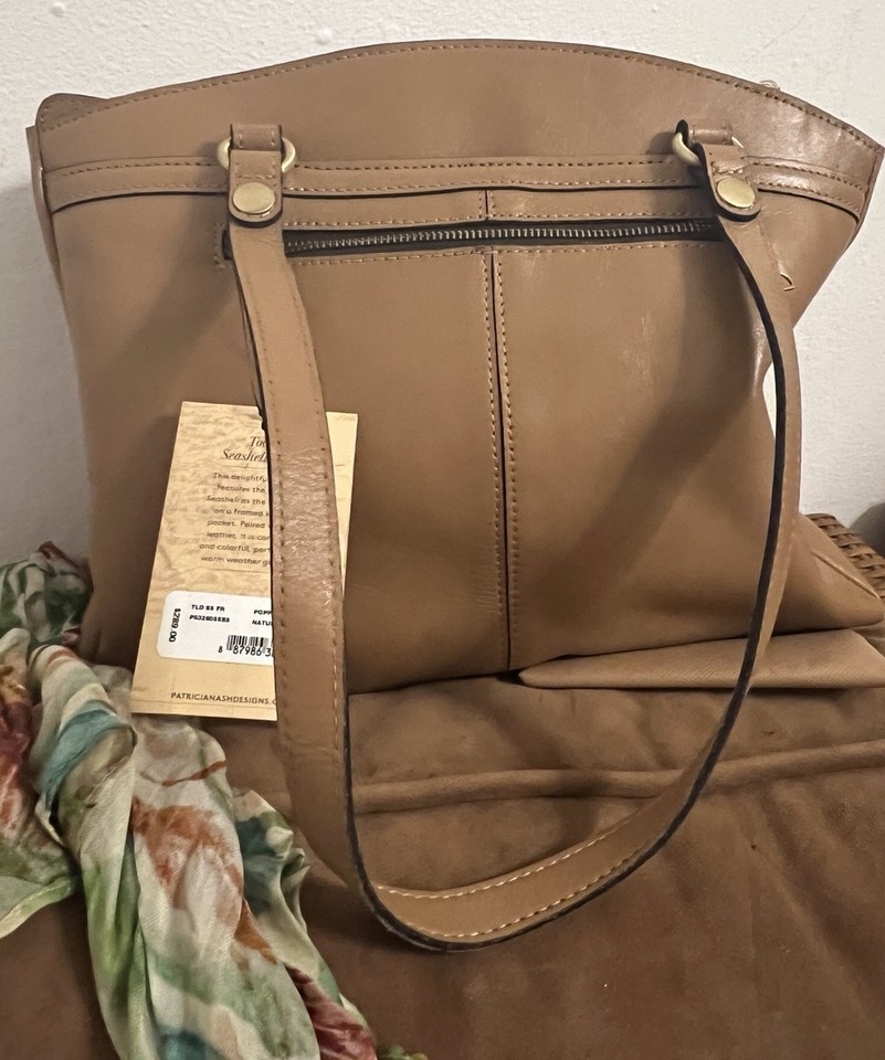 Patricia Nash Poppy Tote Leather w Seashells by the Seashore Scarf Tan Naturale