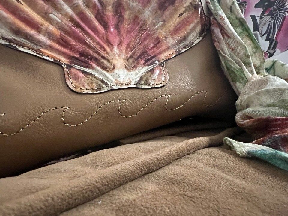 - Patricia Nash Poppy Tote Leather w Seashells by the Seashore Scarf Tan Naturale