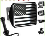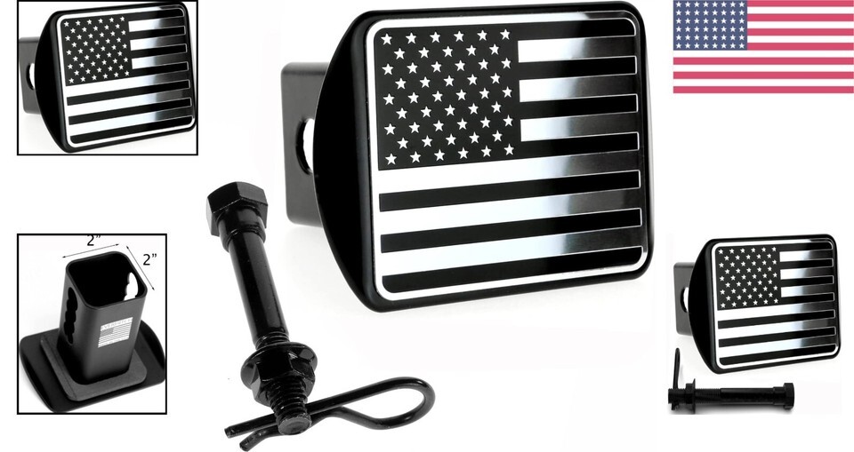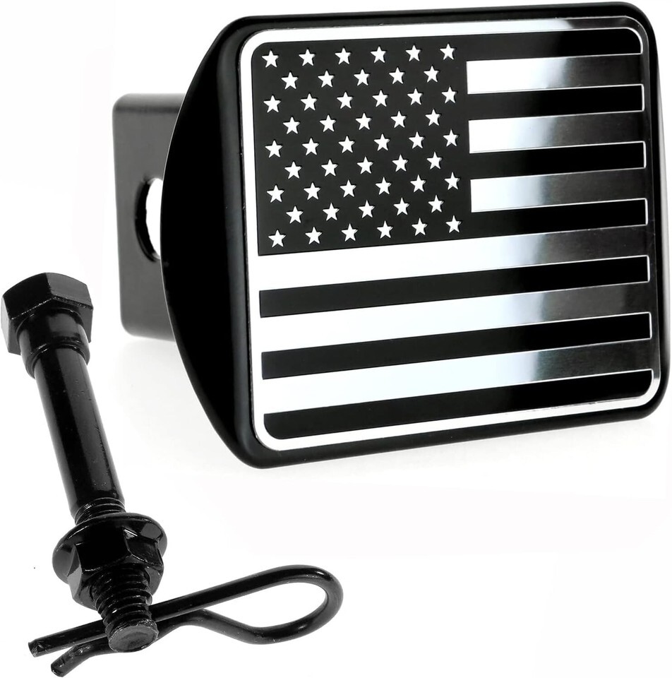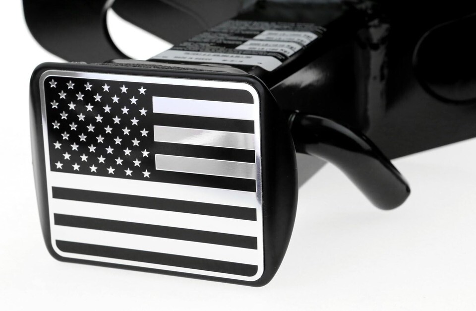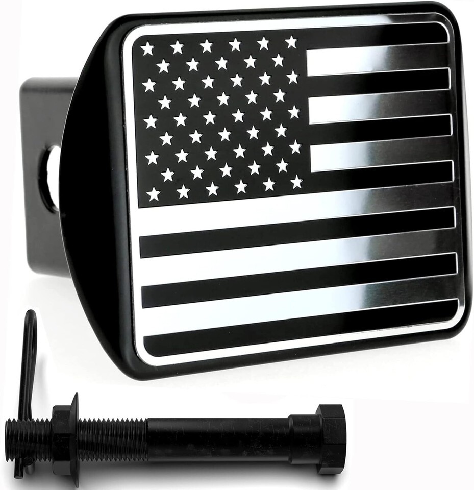 - Patriotic Black & Chrome Trailer Hitch Cover for 2" Receivers - USA Flag Emblem