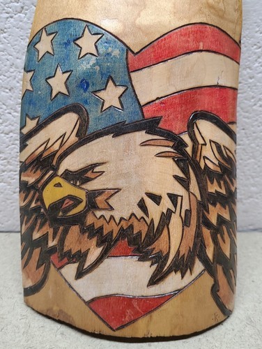 - Patriotic USA Flag Eagle Wood Wall Plaque 5X15" Carved Painted Art BEAUTIFUL!!!