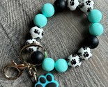 Paw Print Silicone and Wooden Bead Wristlet Keychain Bag Charm Teal