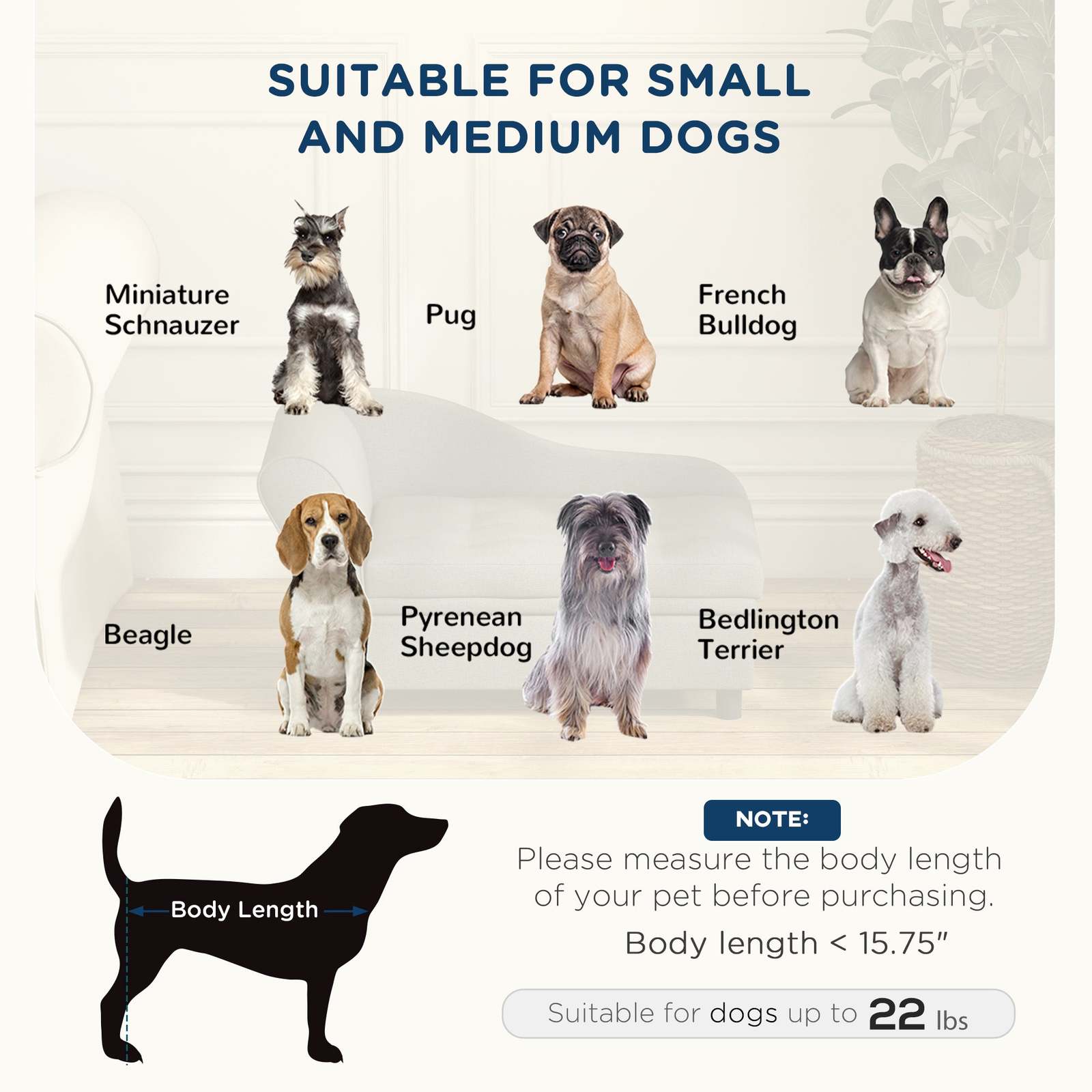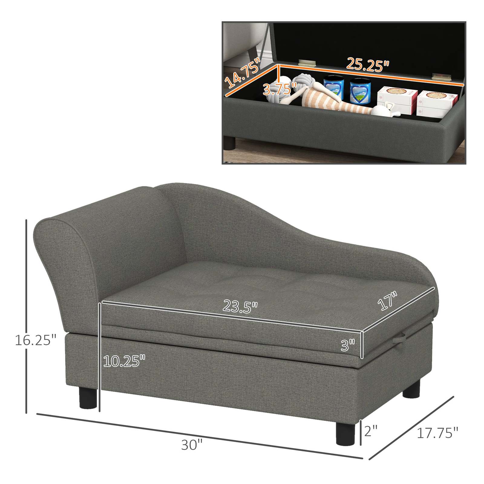 Couch for Dogs Info: Overall Dimensions: 30' W x 17.75' D x 16.25' H. Storage Space: 25.25' W x 14.75' D x 3.75' H. Suitable for small and medium dogs up to 22 lbs. and 15.75' in body length.