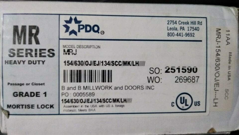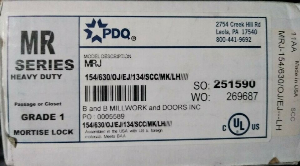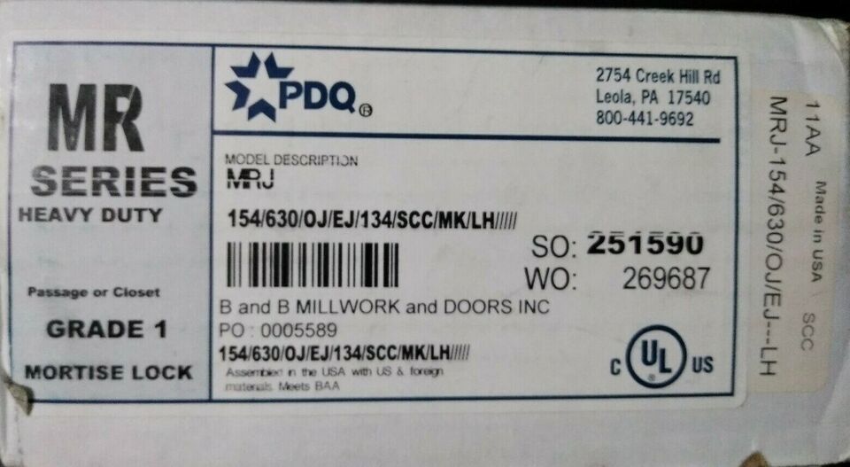 You are Buying a brand New And Factory Sealed PDQ Grade 1 Extra Heavy Duty Mortise Locks MRJ - 154/630/OJ/EJ--LH SERIES