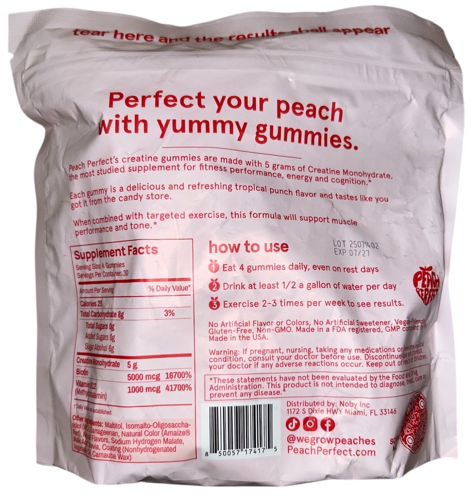 Grow your glutes with Peach Perfect's Creatine Monohydrate Gummies . Each serving contains 5 grams of creatine monohydrate. Delicious Creatine Gummy.**