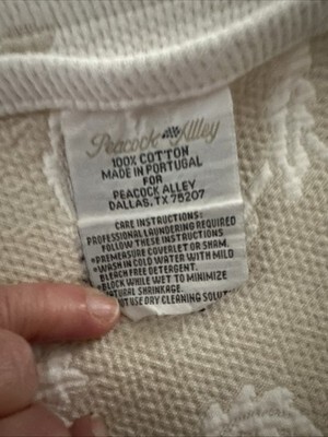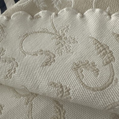 - Peacock Alley"MATELASSE" Coverlet 77”x82” White/Taupe Jacquard 100% Cotton Used