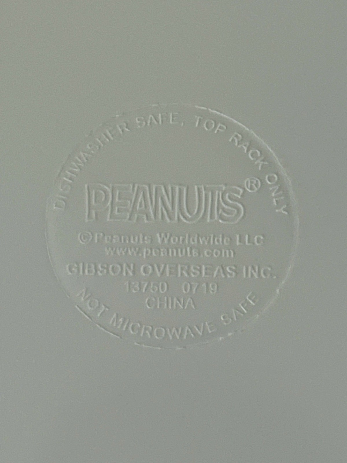 Charming Peanuts Halloween plate set featuring Snoopy and Woodstock dressed as mummies on bright orange backgrounds with double black ring borders. Melamine. Produced by Gibson Overseas in 2019 under license from Peanuts Worldwide, these festive plates bring nostalgic fun to your fall table or holiday decor.