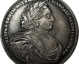 Esta replica meticulosamente elaborada conmemora a Pedro el Grande, una de las figuras mas importantes de la historia rusa. Reconocido por sus reformas transformadoras, Pedro I tuvo como objetivo modernizar el Imperio ruso durante finales del siglo XVII y principios del XVIII. El anverso de la medalla presenta un llamativo busto de Pedro I adornado con una corona de laurel, que simboliza su estatura imperial y su papel excepcional en la historia. Las inscripciones cirílicas y el año 1723 destacan un momento crucial en el que el zar se dedico a establecer una sociedad rusa de orientacion occidental, canalizando considerables recursos en el desarrollo del ejercito, la marina y el comercio marítimo. Por el reverso, prominente el tradicional aguila bicefala, símbolo del estado ruso, agarrando un cetro y un orbe como emblemas de poder, con un escudo de armas intrincadamente diseñado en su centro. Esta composicion significa la autoridad centralizada establecida por Pedro I, posicionando a Rusia como una potencia europea formidable. Aunque es una reproduccion moderna, la medalla emana detalles notables e iconografía historicamente precisa, lo que la convierte en una pieza atractiva para coleccionistas y entusiastas de la historia rusa. Este artefacto sirve como un vínculo tangible con la epoca en que Pedro I sento las bases de la Rusia moderna y elevo su prestigio internacional.