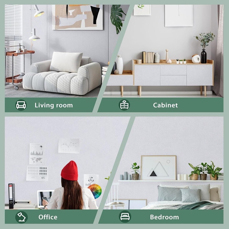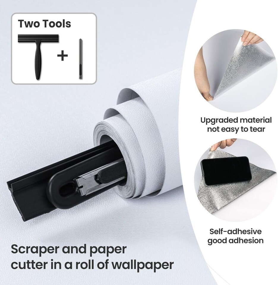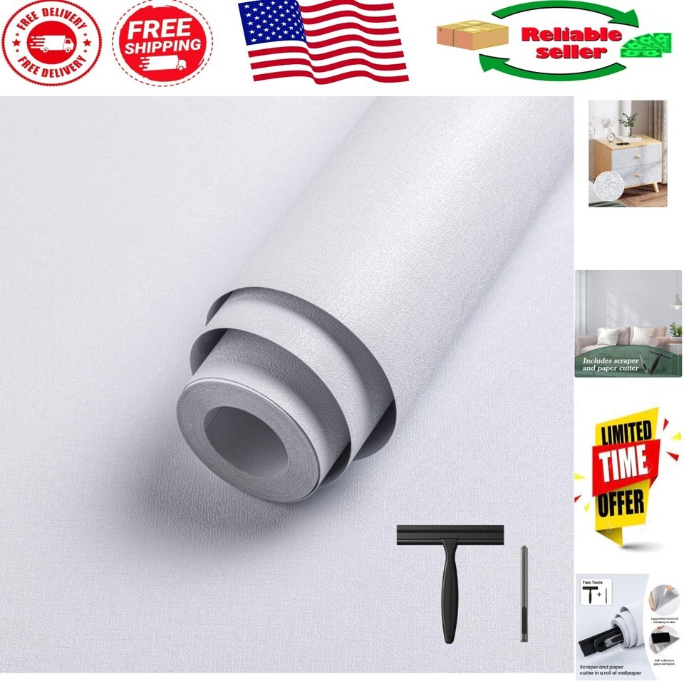Transform your living space into a haven of elegance with our Peel Stick White Contact Paper. This exquisitely designed wallpaper not only elevates aesthetics with its solid color and texture but also simplifies the renovation process. The included scraper and paper cutter enhance your DIY experience, while the quality upgraded materials ensure that your wallpaper will stand the of time.