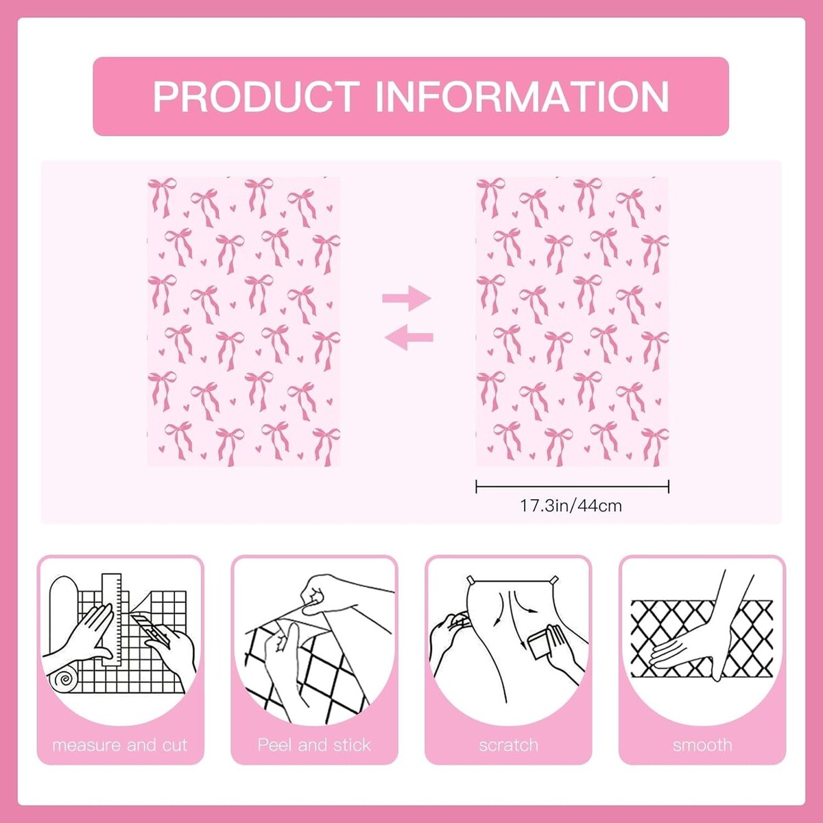 - Peel and Stick Wallpaper, 17.3 Inch x 6.5 Feet, Bow and Love Design Self Adhe