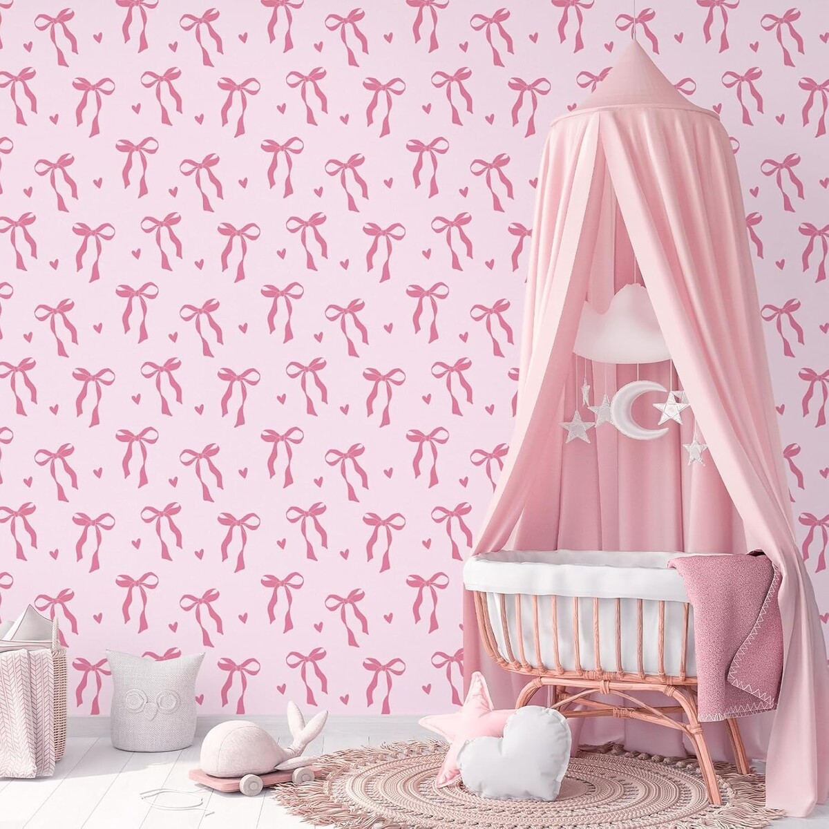 Peel and Stick Wallpaper, 17.3 Inch x 6.5 Feet, Bow and Love Design Self Adhe