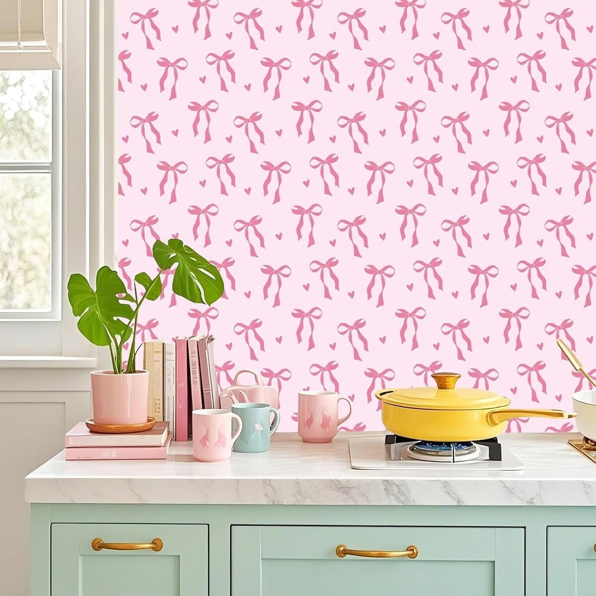 The bow and love pattern making the contact paper visually appealing. This wallpaper complements most home decors and will add warmth and charm to your home