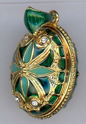 Russe Faberge Faux Oeuf Pendentif de Rouge,Vert et Or Volutes * / Cristaux