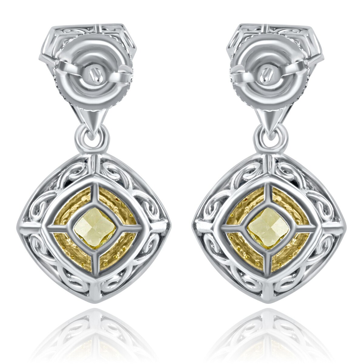 - Pendientes de Gota 1.62 TCW Cojín Billón Diamante Amarillo 14k Oro Blanco