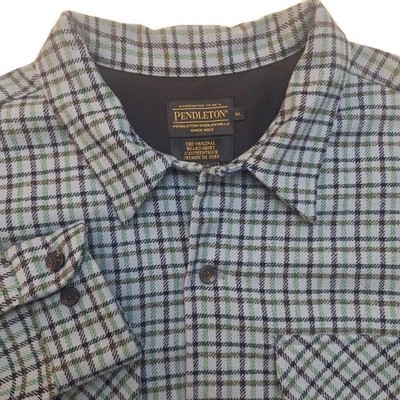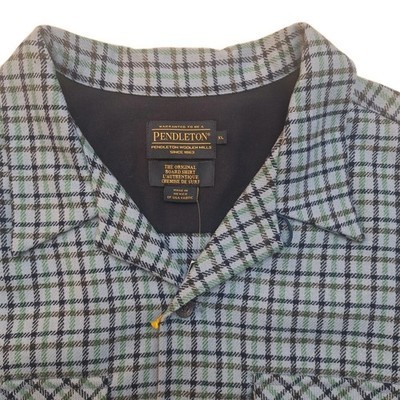 - Pendleton Board Shirt Umatilla Loop NWT Wool Lt Blue Navy Green Plaid Mens XL