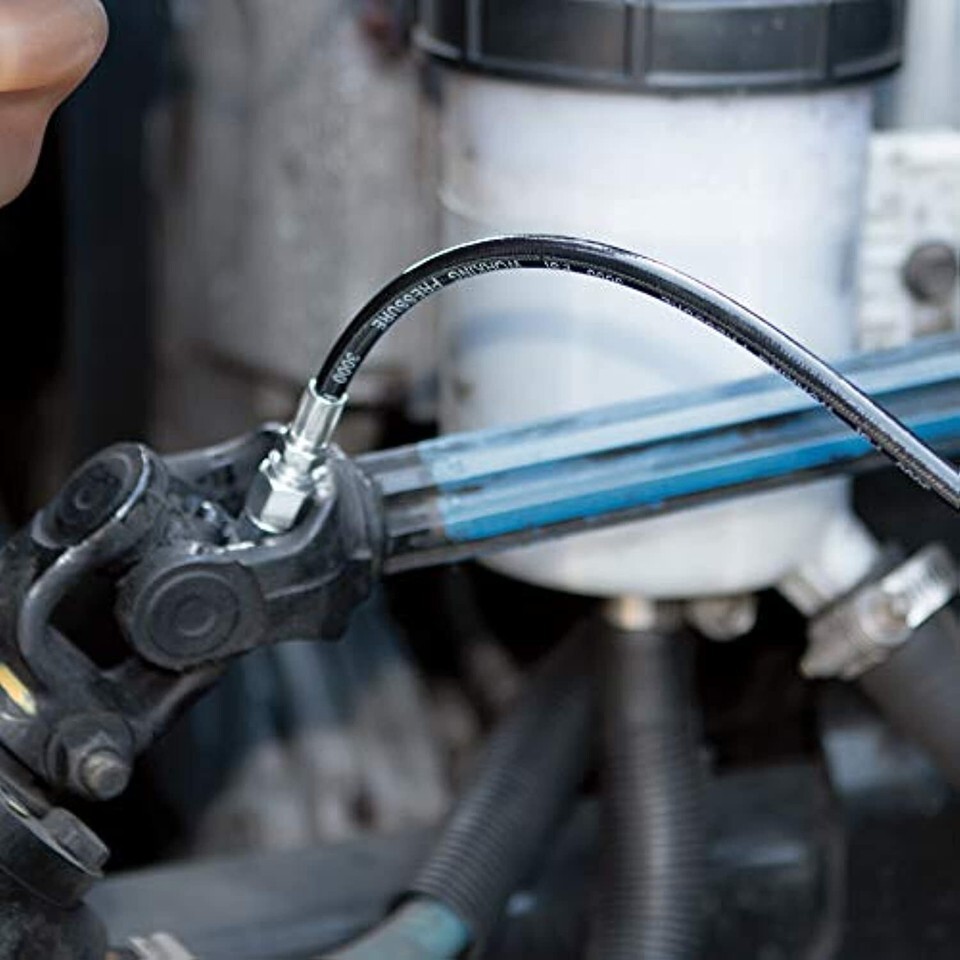 Performance Tool W54211 18" Flex Grease Gun Hose Extension With Coupler, 4,500 Working PSI (1/8 NPT) Performance Tool 18" hose for hard to reach areas For use with hand and air powered grease guns Size: 18" Working Pressure (PSI): 4,500 Features 18" hose for hard to reach areas. For use with hand and air powered grease guns. Size: 18" Working Pressure (PSI): 4,500 Burst Pressure (PSI): 10,000 USA SHIPPING estimates delivery times and we work to get your item to you as quickly as possible and within those times, but please know it may take slightly longer than the estimate.