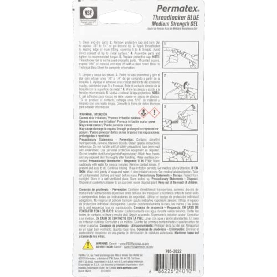 - Permatex 24010 Medium Strength Threadlocker Blue Gel, 10 g Gel Twist Applicator