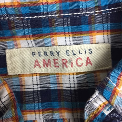 You Are Buying A Perry Ellis American Button Down Shirt It is in Great Used Condition with No Damage, Stains or Rips The measurements are on the pictures but If you need more measurements please just ask and I will measure for you and I will try and contact you as soon as possible