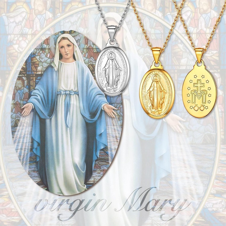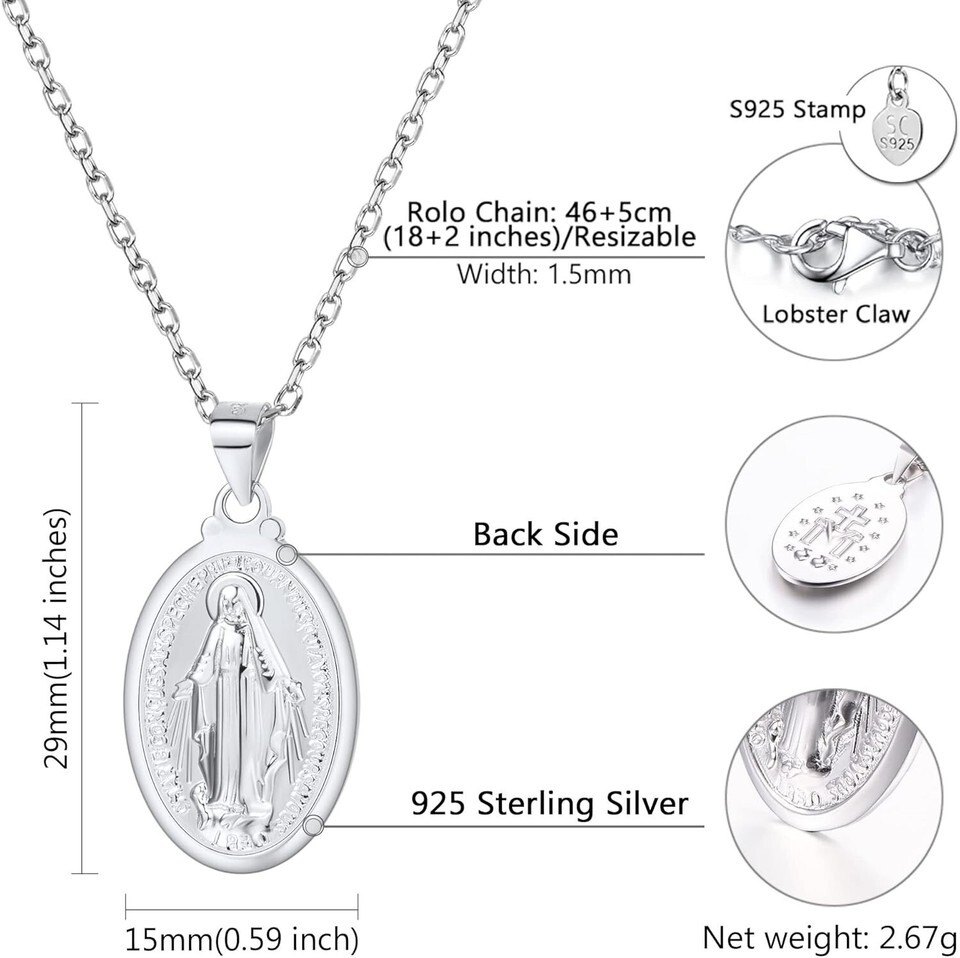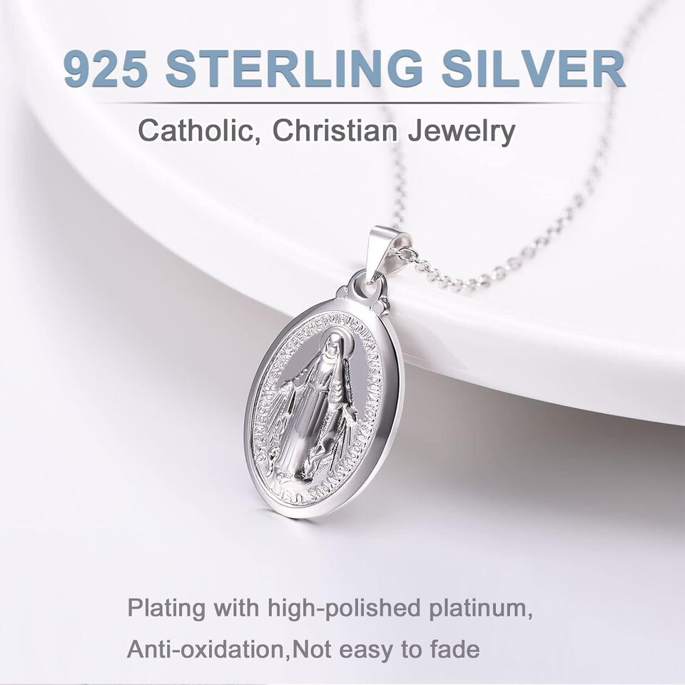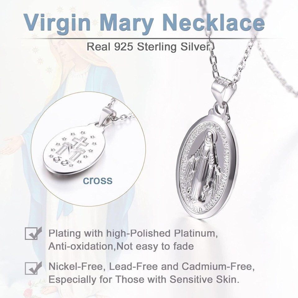 This exquisite pendant necklace is the perfect blend of elegance and devotion. Crafted with care from 925 sterling silver, it features a delicate depiction of the Virgin Mary on one side, with a beautiful cross on the reverse. This thoughtful design offers a reminder of faith and strength, perfect for anyone seeking guidance in challenging times.