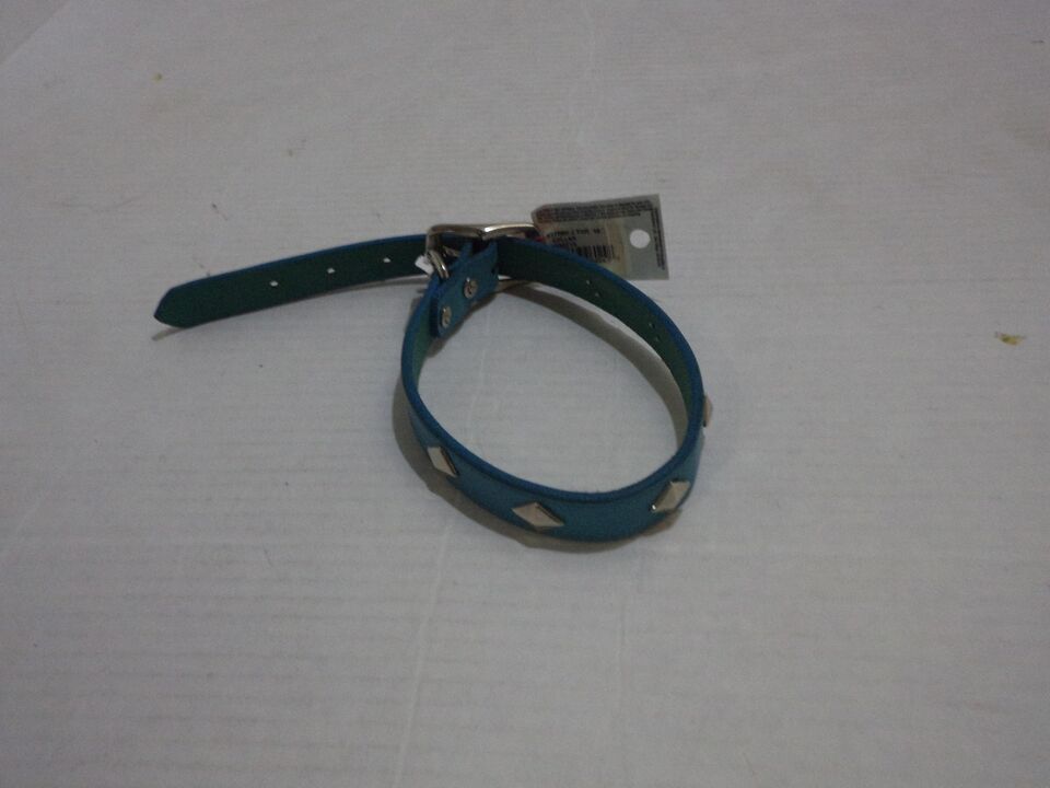 You are Buying A Brand New Petco Adjustable Blue Leather Diamond Stud Dog Collar, For Neck Sizes 18 Ins Petco Blue Leather Diamond Stud Dog Collar is an elegant and playful way to accessorize your four legged friend. Designed to provide your pup with a stylish and comfortable fit, this dog accessory features genuine leather and an adjustable buckle closure. Studded Leather Dog Collar from Petco Fine craftsmanship made with genuine leather Silver buckle lets you adjust to fit their neck comfortably Features silver studs, hardware accents and a Petco tag charm Includes a D-ring that's handy for attaching tags or leashes Matching Bond Co. dog leashes and accessories are available and sold separately