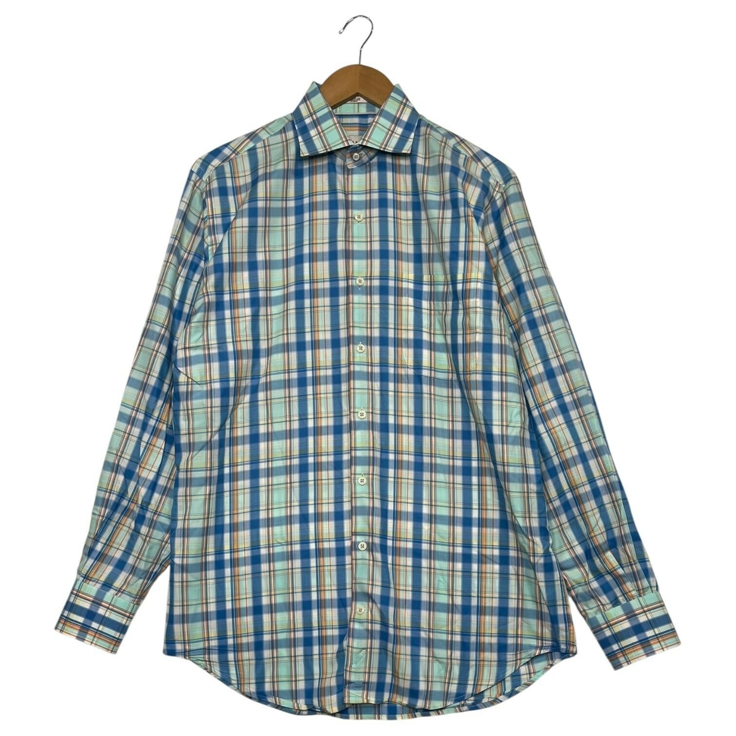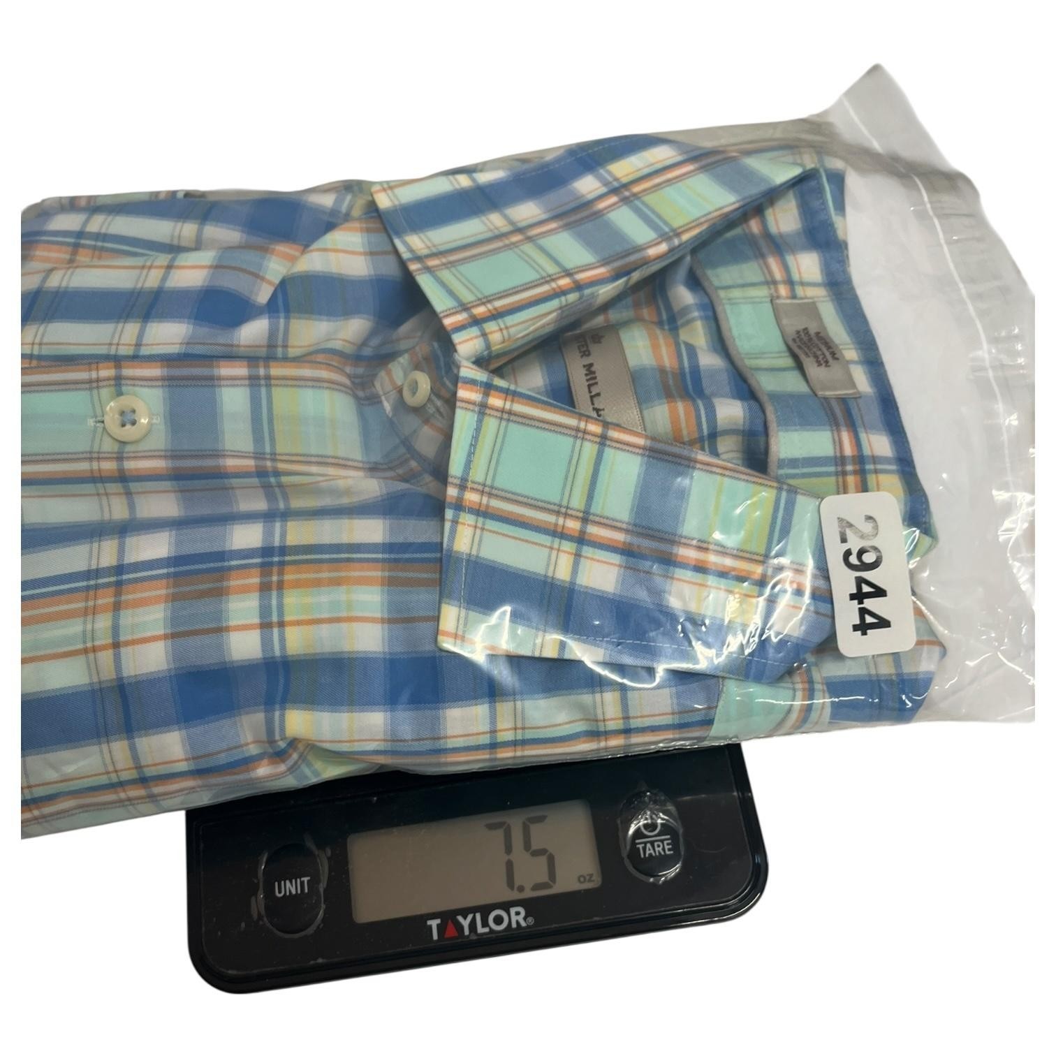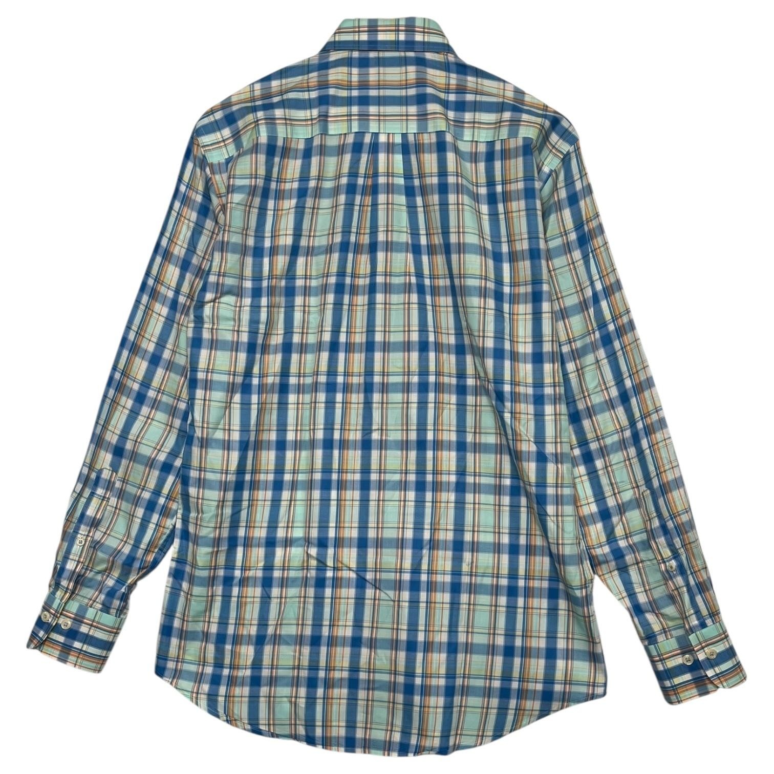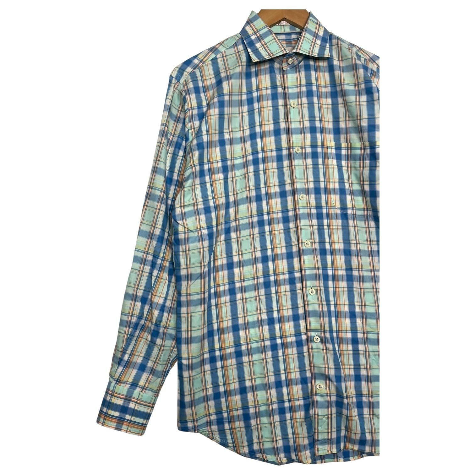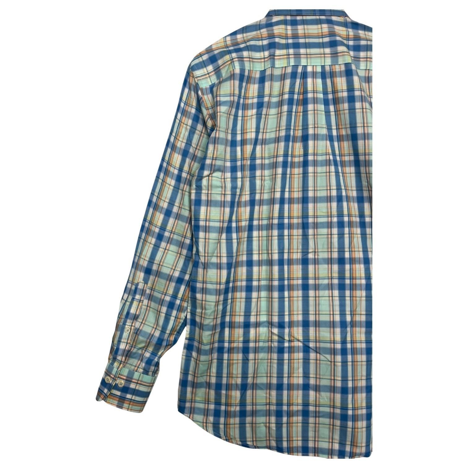 Peter Millar Shirt Mens Medium Blue Orange Plaid Button Down Dress Casual Preppy, Casual, Classic Condition: Gently worn, no visible flaws. All buttons intact and no holes or stains noted. Material: 100% Cotton Classic blue, orange, and white plaid pattern Features a chest pocket, full button front, and long sleeves with button cuffs Tag size: Medium Approximate flat measurements: - Chest: 22.5 inches - Length (collar seam to hem): 31 inches Made in China Great business, smart casual, or golf shirt ready to wear Excellent pre-owned condition - see pics and ask questions for more details.