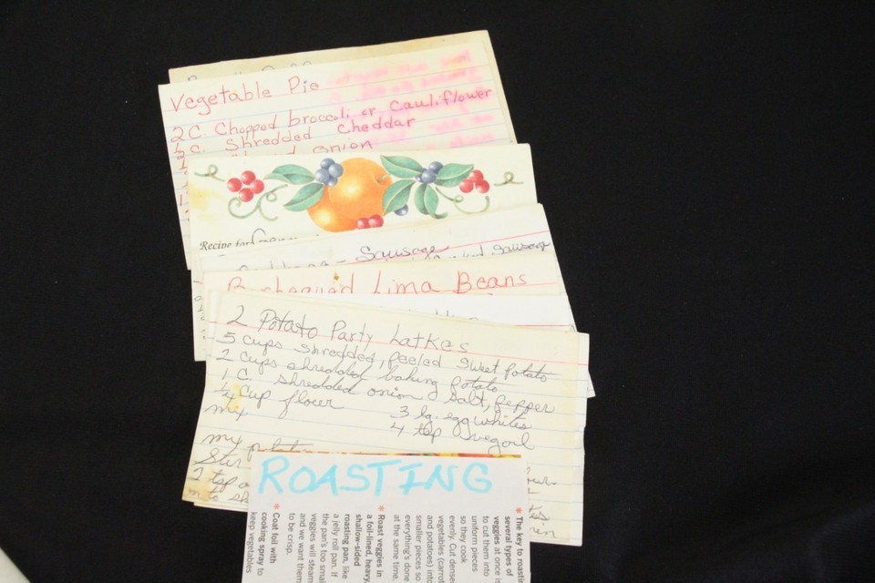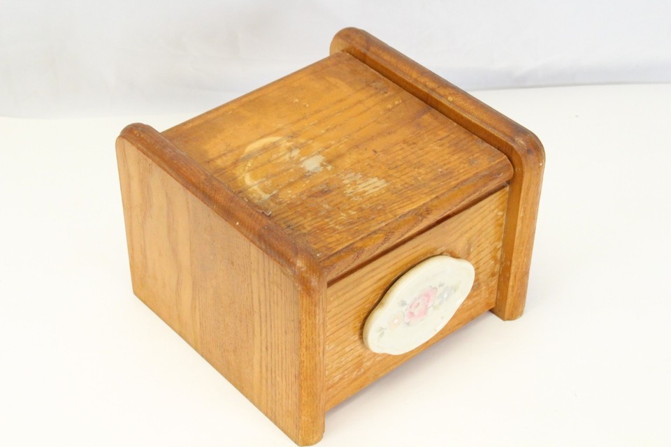 - Pfaltzgraff Tea Rose Wooden Recipe Box Walnut Wood w/ Plaque Handwritten recipes