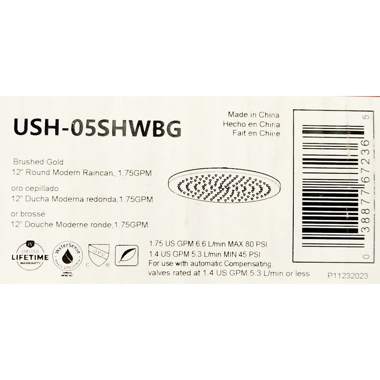 Thank you for visiting! All orders are shipped for FREE within the United States. For international sales, shipping costs will be added to the purchase price. Please contact us with your shipping address for a parcel quote. Orders before 2PM CST will be shipped the same day. Our items have never been installed and are sold as open-box products, unless otherwise noted. While the boxes may have slight damage, as shown in the pictures, the items themselves are carefully inspected to ensure they are not damaged or missing any pieces. We accept returns on items that have not been installed or damaged within 14 days of your purchase. In the rare event that an item is defective upon installation or has any blemishes not previously stated in the description, we will discuss a refund or exchange. Please, reach out if you have any issues that need to be addressed. Our goal is to achieve complete customer satisfaction. We appreciate you viewing this listing and look forward to serving you. Pfister USH-05SHWBG Modern Round 1.75 GPM Rain Shower Head - Brushed Gold Constructed of metal for long lasting durability and dependability Premier finishing process โ€“ finishes will resist corrosion and tarnishing through everyday use Coordinates with products from the Modern Round line seamlessly Single function shower head Designed to easily install with standard U.S. plumbing connections All hardware required for installation is included Shower arm and flange sold separately Shower Head Width: 12" (left to right) Shower Head Height: 2-1/16" (spray nozzles to connection outlet) Flow Rate: 1.75 gallons-per-minute