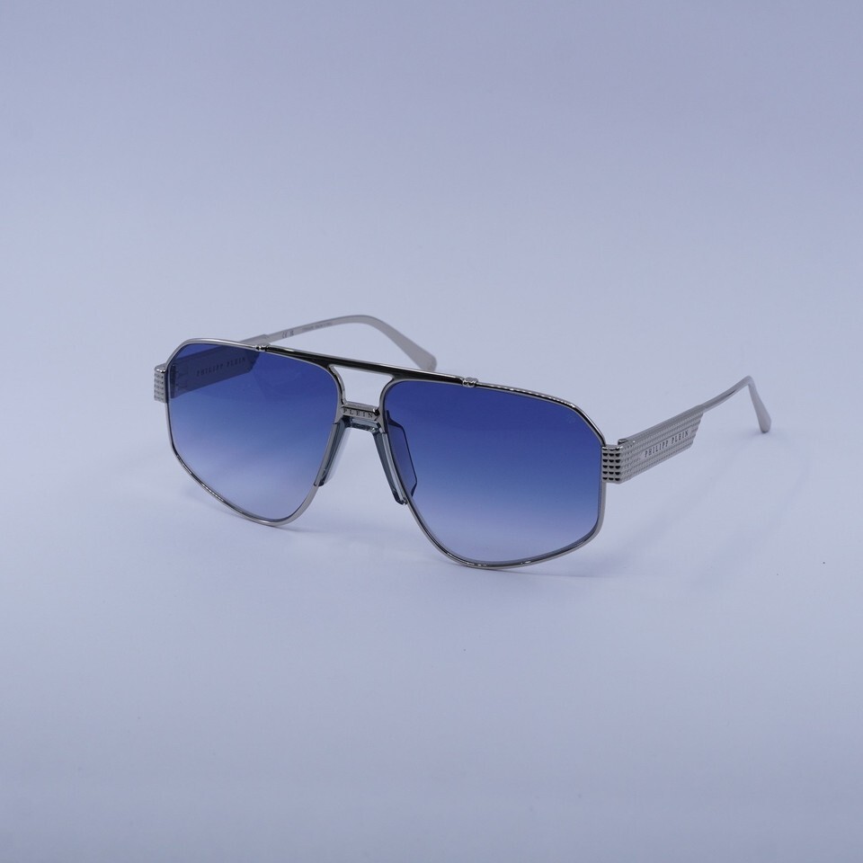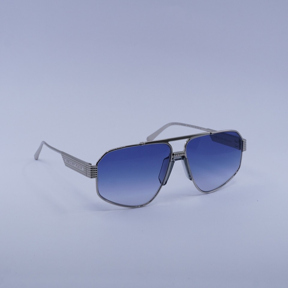 Philipp Plein SPP106M 0579 Polished Palladium/Blue Gradient 63-13-145 Sunglasses New Authentic