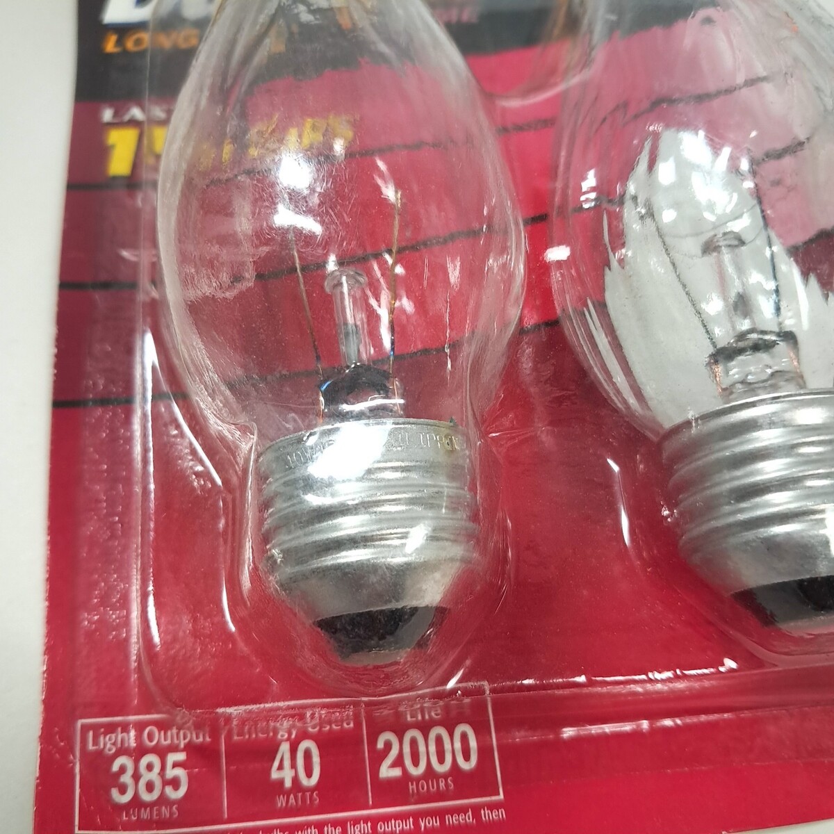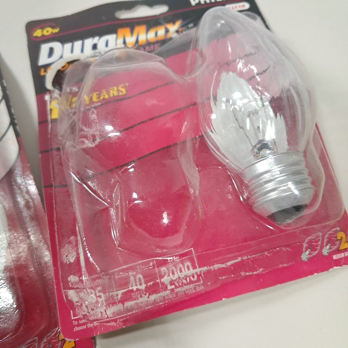Philips DuraMax set 3 Light bulbs Flame blunt tip Clear Medium Base F15 40w Clear bulbs. This is for 3 bulbs TOTAL. 1 pack has 2 bulbs, and 1 only has 1 bulb.