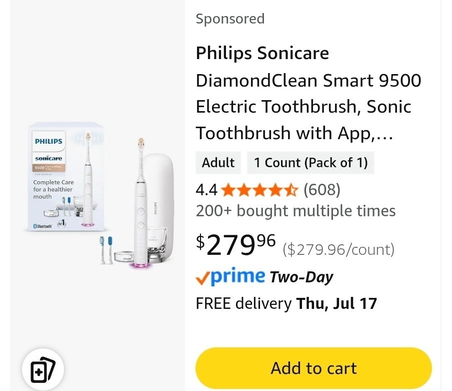 - PHILIPS SONICARE DIAMONDCLEAN SMART 9500 ELECTRIC TOOTHBRUSH HX9923/01 - WHITE