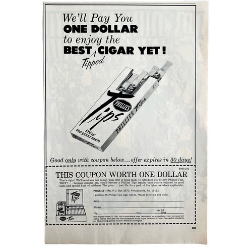 Phillies Tips Cigars 1965 Advertisement Tobacco Enjoy The Good Taste DWII10