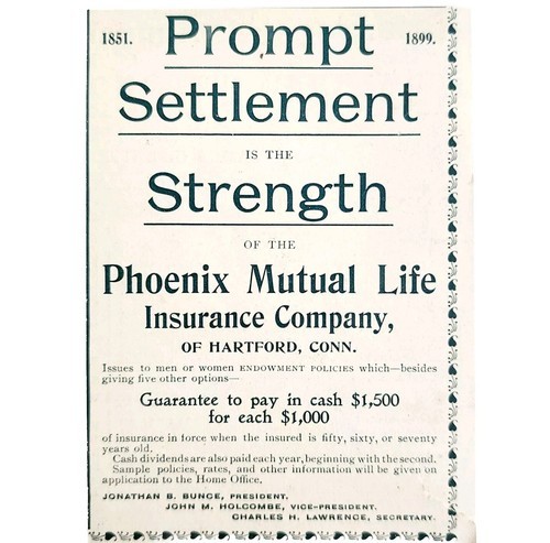 Phoenix Mutual Life Insurance Co 1899 Advertisement Victorian Connecticut E85B