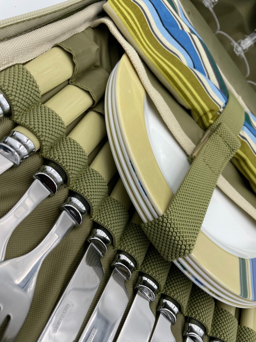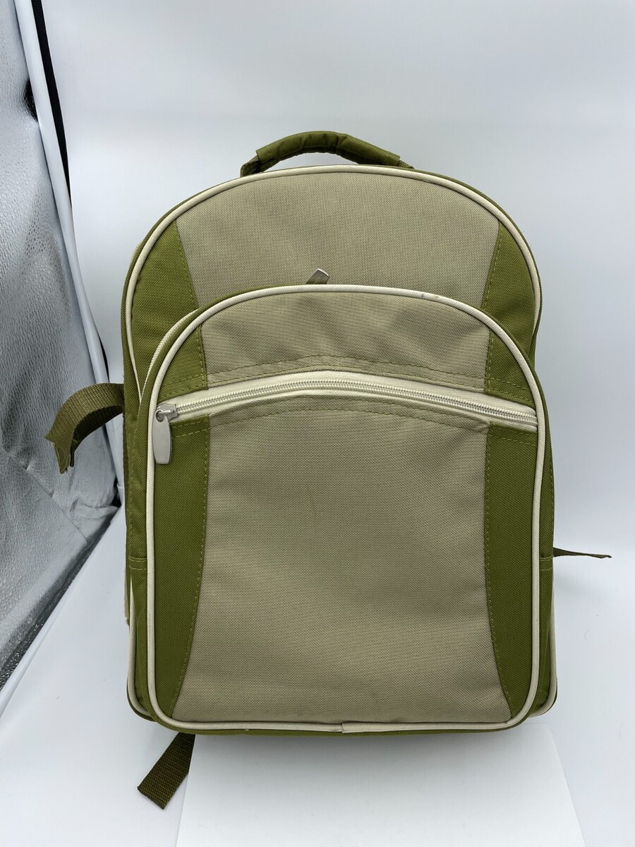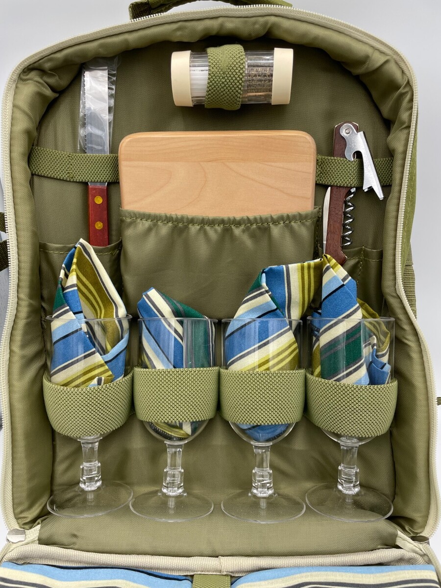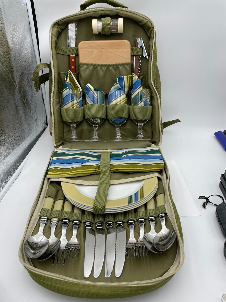 Picnic Backpack Bag Traveling Time Comfort Green Wine Glasses Plates Utensils