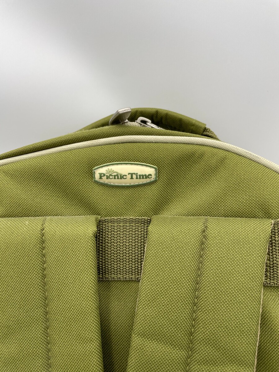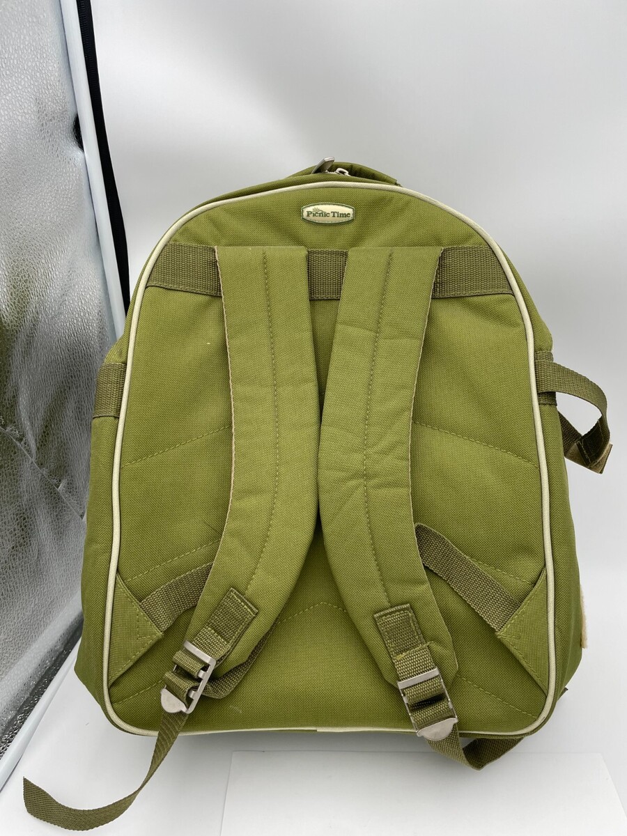 - Picnic Backpack Bag Traveling Time Comfort Green Wine Glasses Plates Utensils