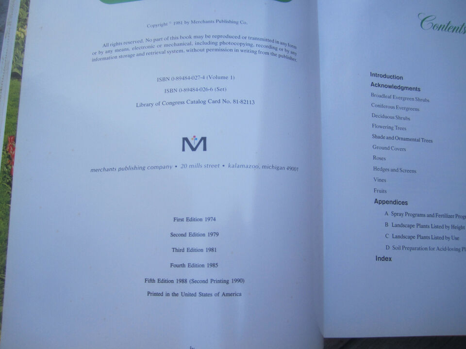 PICTORIAL LIBRARY OF LANDSCAPE PLANTS-VOLUME 1-NORTHERN HARDINESS ZONES 1-5. Shipped with USPS Media Mail.