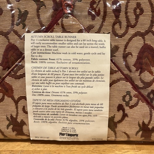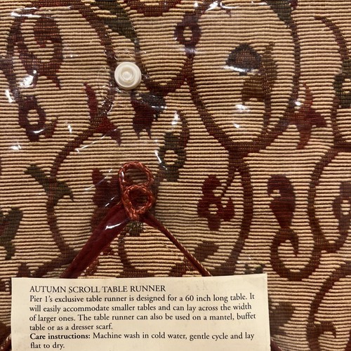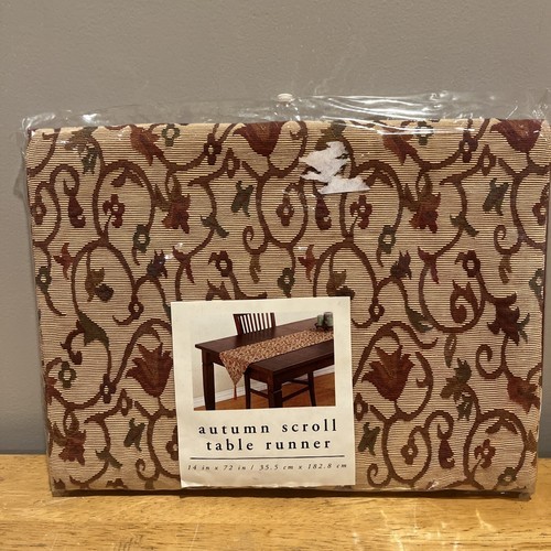 - Pier 1 AUTUMN SCROLL Table Runner 14” X 72” Fall Colors Green Taupe Burgundy New