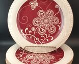 Primary image for Pier 1 Imports "Maribeth"  Set Of Four 11" Dinner Plates, Red Floral Design
