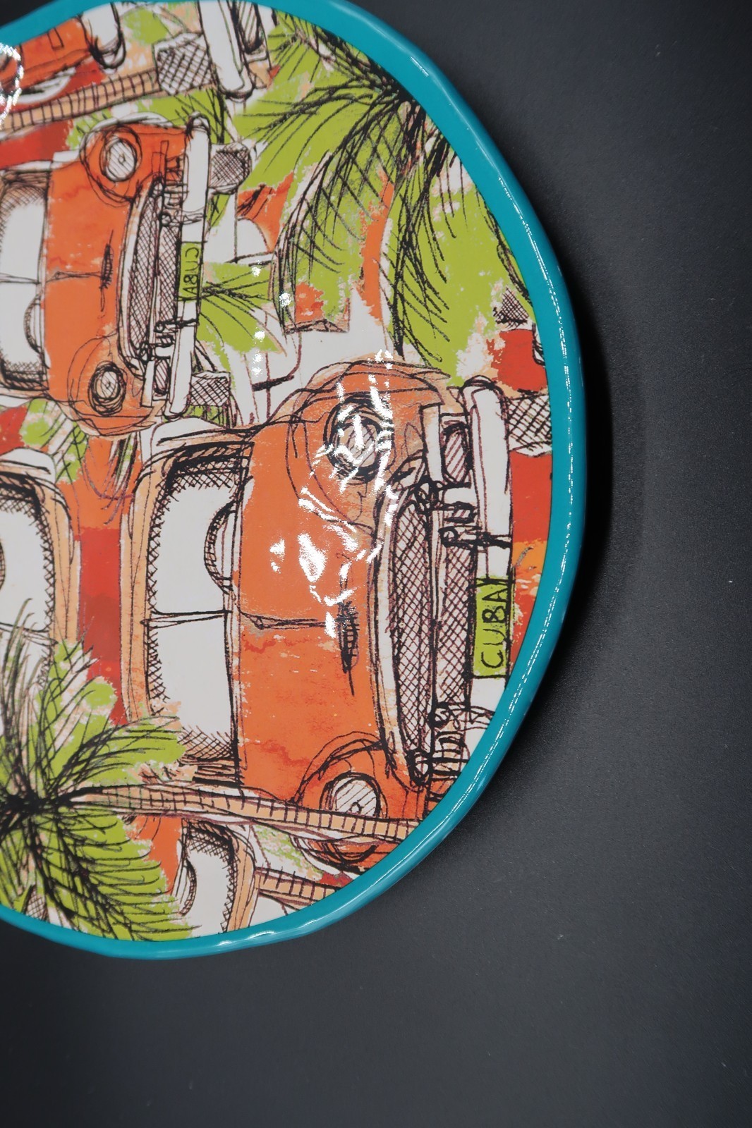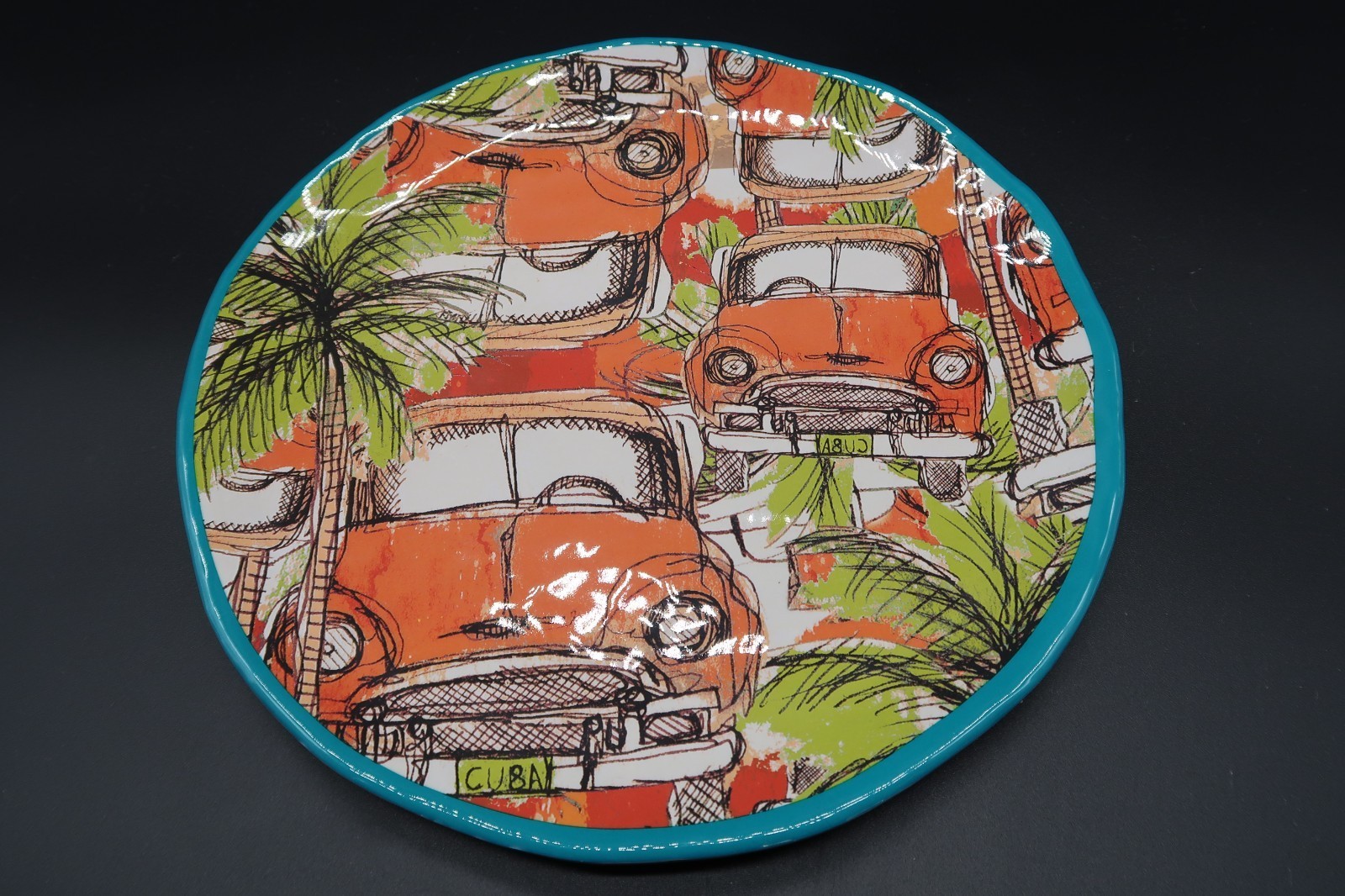 Pier 1 Imports Vintage Car Blue Green Melamine 9" Plate Replacement
