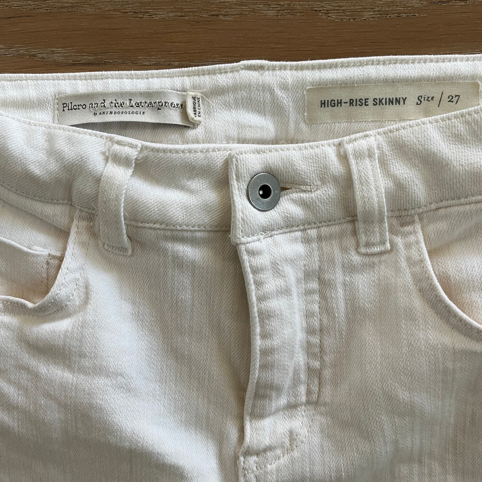 - Pilcro Anthropologie High-Rise Skinny Jeans White Crochet Side Stripe Sz 27