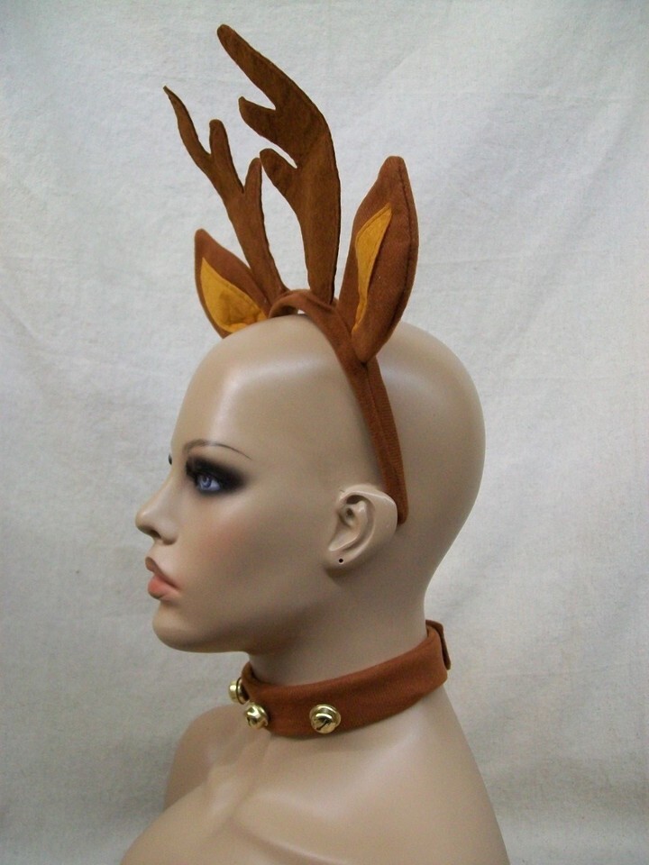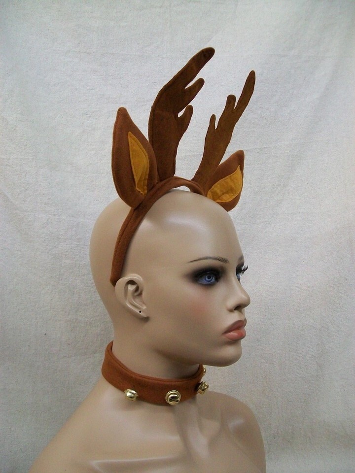 Pin up Reindeer Costume Set Rudolph Christmas Play Antlers Headband Jingle Bells